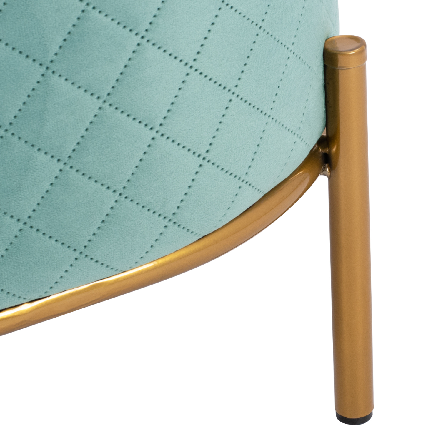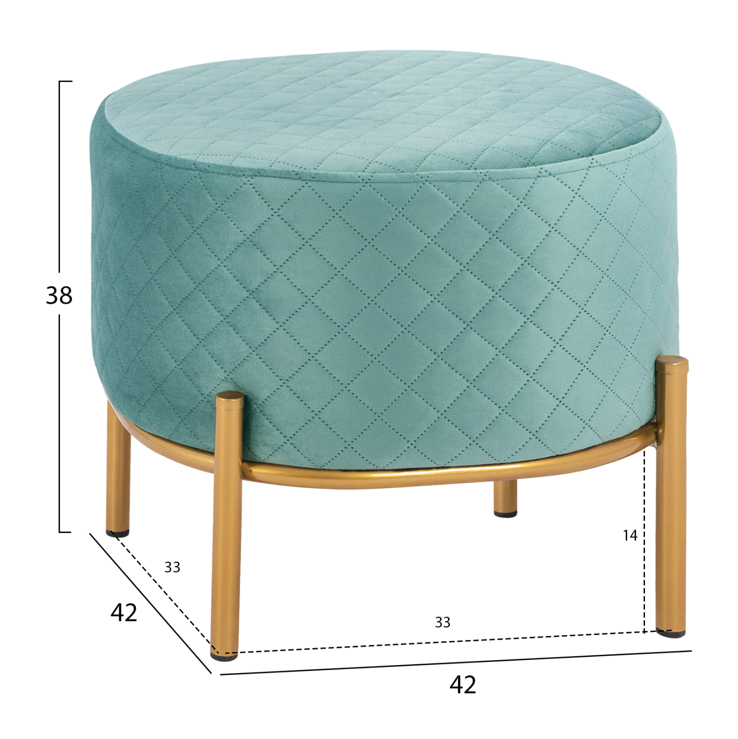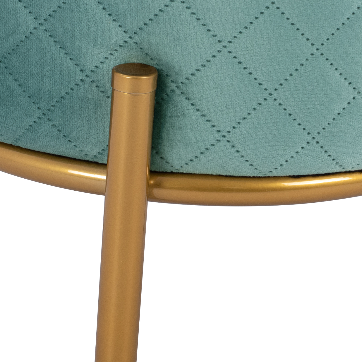 Σκαμπό από βελούδο σε φυστικί απόχρωση, με μεταλλική βάση σε χρυσό χρώμα.