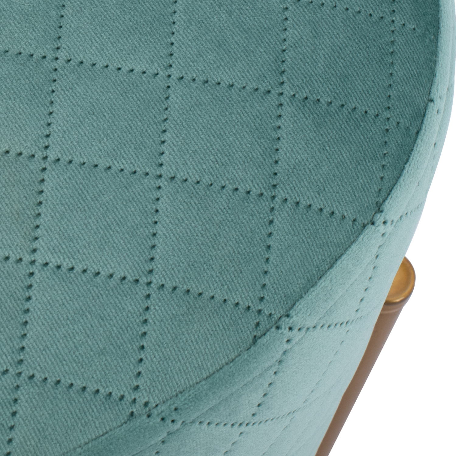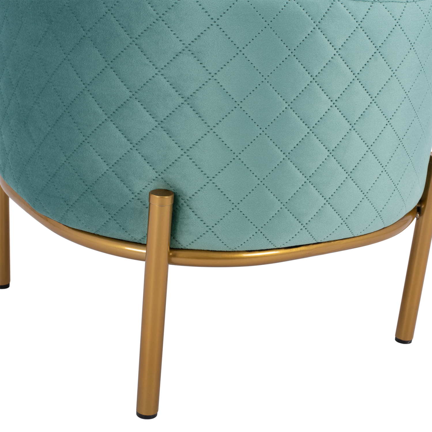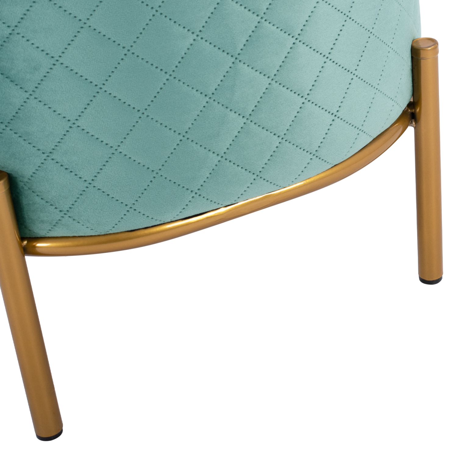 Σκαμπό από βελούδο σε φυστικί απόχρωση, με μεταλλική βάση σε χρυσό χρώμα.