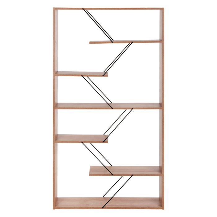 Η βιβλιοθήκη FB92240.14 είναι μια μοντέρνα πρόταση για το γραφείο σας ή οπουδήποτε αλλού θέλετε να τοποθετήσετε μια βιβλιοθήκη. Διαθέτει 5 ράφια τοποθέτησης που δεν πιάνουν όλο το μήκος της βιβλιοθήκης αλλά στηρίζονται μεταξύ τους με μεταλλικές ράβδους σύν ένα ράφι που είναι η κάτω επιφάνεια της βιβλιοθήκης, ενώ οι διαστάσεις της την καθιστούν βολική για πολλούς χώρους. Το χρώμα της είναι ΦΥΣΙΚΟ ΟΑΚ με ΜΑΥΡΕΣ ράβδους.