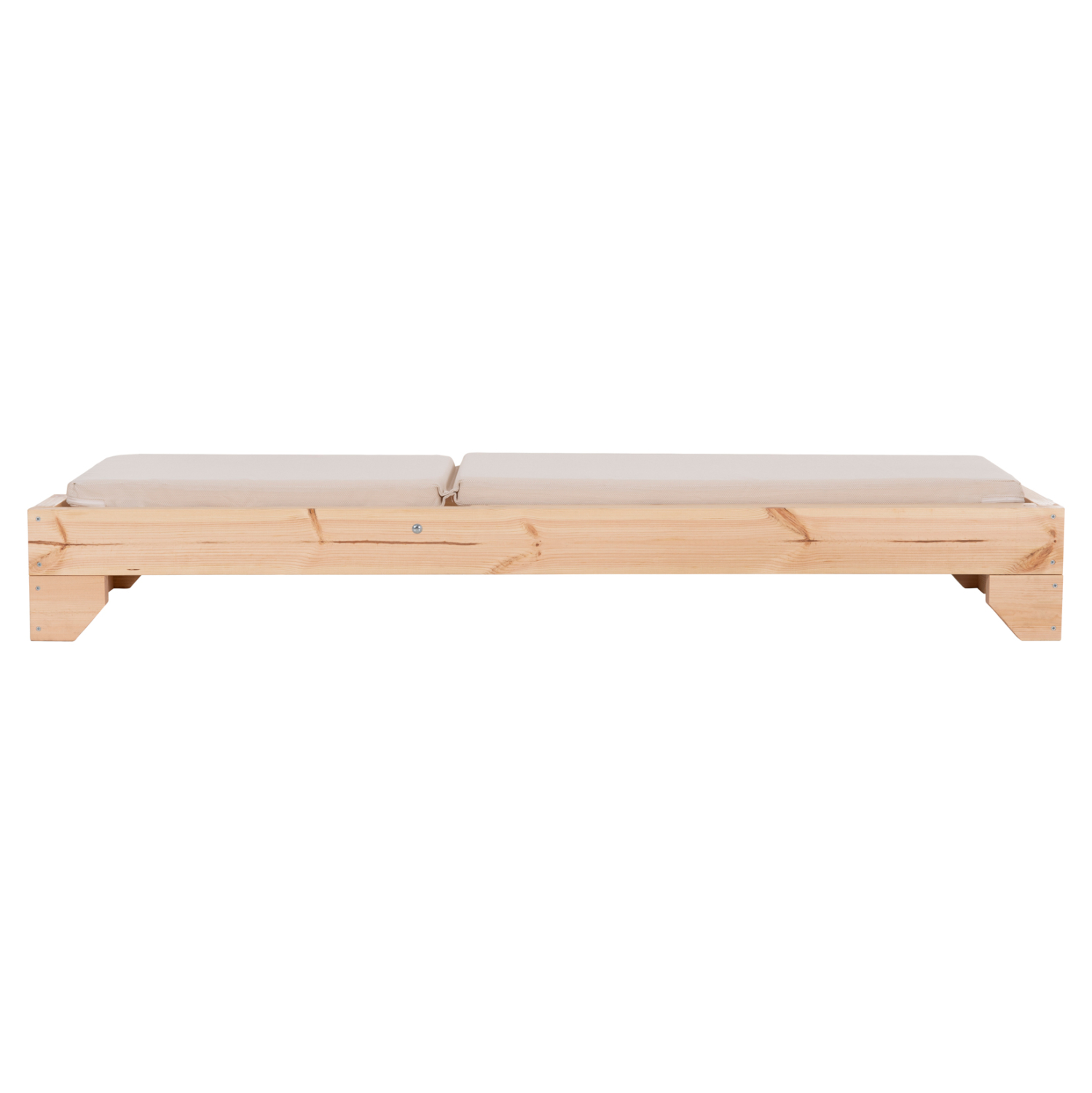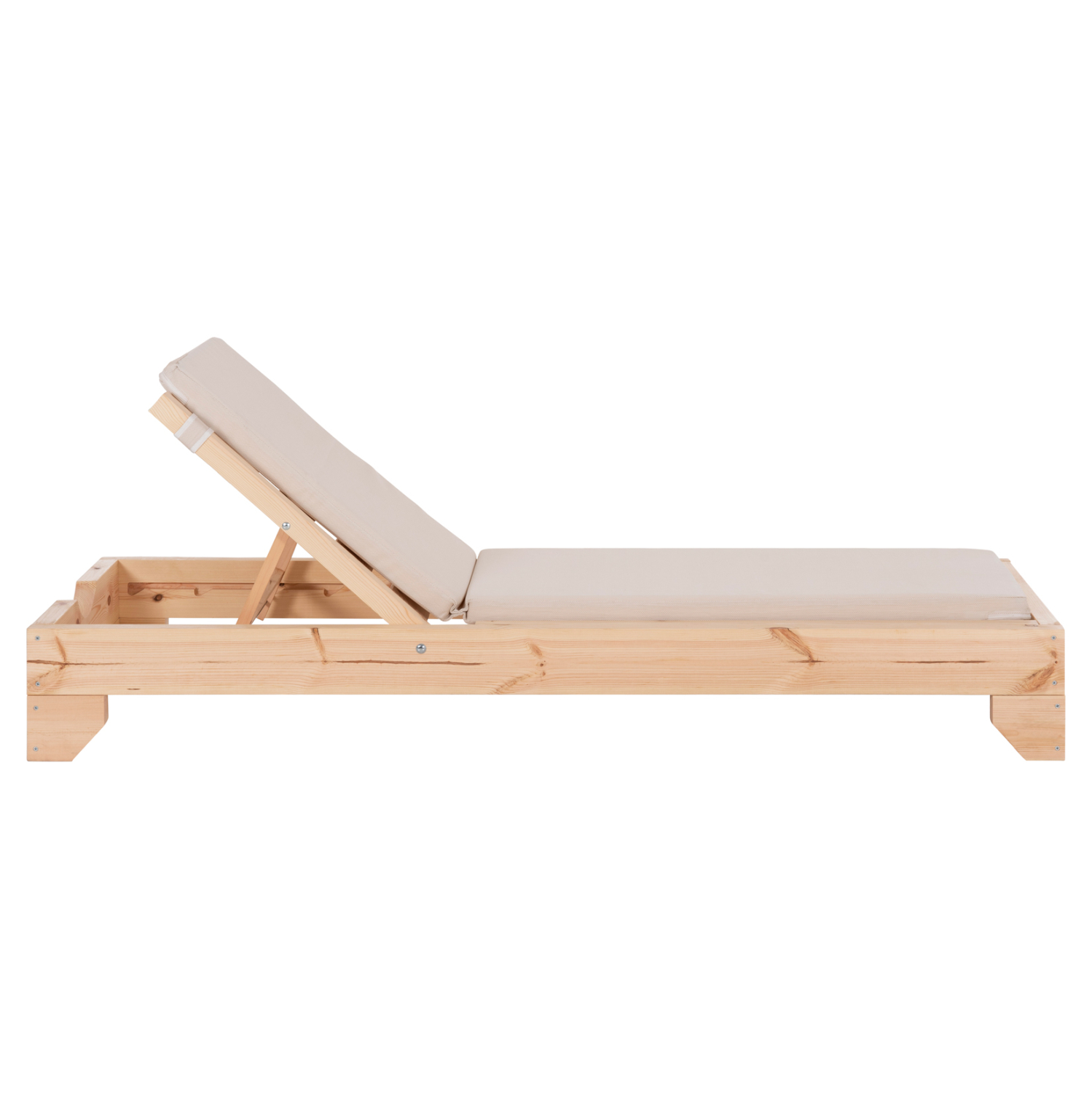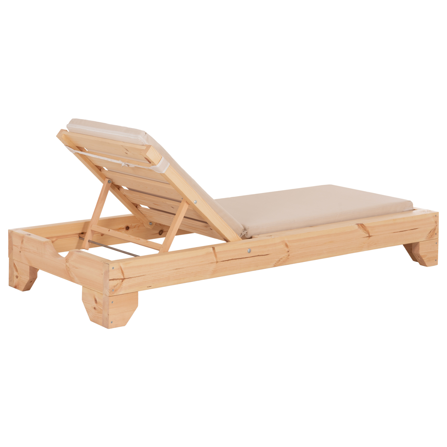 -Ολόκληρη η ξαπλώστρα έχει κατασκευαστεί από ξύλο πεύκου με εμποτισμό και επιπλέον στρώση με βερνίκι νερού. Το πεύκο είναι ένα μαλακό, λευκό ή ανοιχτό κίτρινο ξύλο το οποίο είναι ελαφρύ σε βάρος με ευθύγραμμα νερά ξύλου. Αντέχει στη συρρίκνωση, διόγκωση και κάμψη. Ο εμποτισμός υπό την ευρεία έννοια είναι ο χρωματισμός του ξύλου (συνήθως βερνίκια) με την μέθοδο της εμβάπτισης.