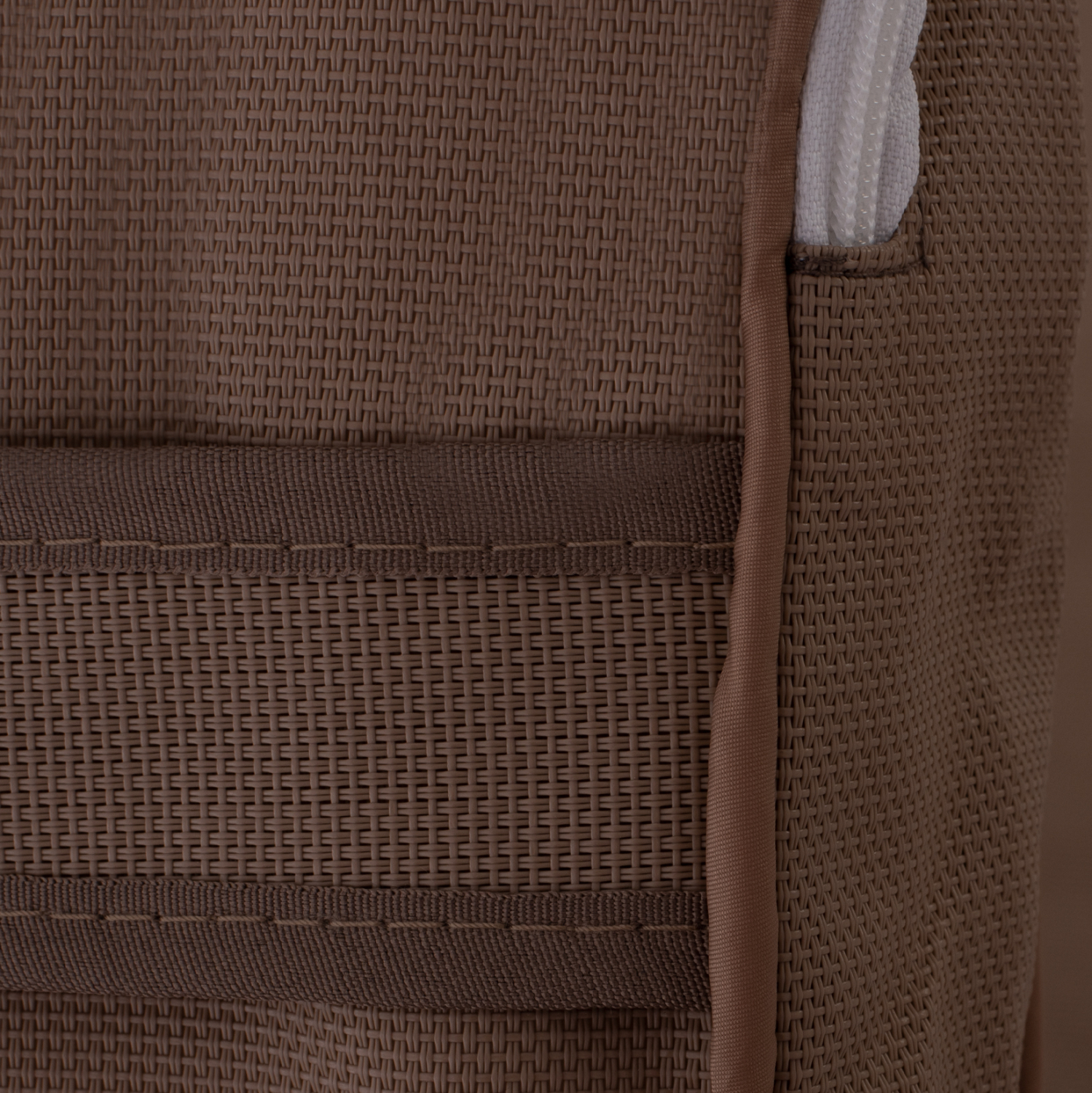 -Το μαξιλάρι/στρώμα με μαξιλαράκι κεφαλής που συνοδεύει την ξαπλώστρα είναι από αφρό μέτριας σκληρότητας ενώ το κάλυμμα είναι από textilene σε ΜOKA χρώμα. Δένεται στην ξαπλώστρα με κορδόνια.