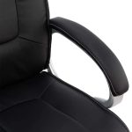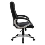 Διευθυντική καρέκλα γραφείου σε μαύρο χρώμα. Μια «πλούσια» καρέκλα γραφείου με ψηλά μπράτσα με κλίση και επενδυμένα με μια λεπτή στρώση αφρολέξ σε PU δέρμα. Η πλάτη είναι ψηλή με πλούσια στρώση από αφρώδη υλικά για άνεση κατά την χρήση και υποστηρίζει ολόκληρο τον κορμό σας, ενώ είναι επενδυμένη με υψηλής ποιότητας PU δέρμα , όπως επίσης και το φαρδύ και αναπαυτικό κάθισμα με την αναπαυτική επιφάνεια. Η βάση είναι ασημί σε σχήμα «αστέρι» με μαύρες λεπτομέρειες στο τελείωμα.