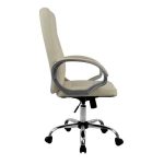 Διευθυντική καρέκλα γραφείου σε εκρού χρώμα. Μια «πλούσια» καρέκλα γραφείου με ψηλά μπράτσα με κλίση και επενδυμένα με μια λεπτή στρώση αφρολέξ σε PU δέρμα. Η πλάτη είναι ψηλή με πλούσια στρώση από αφρώδη υλικά για άνεση κατά την χρήση και υποστηρίζει ολόκληρο τον κορμό σας, ενώ είναι επενδυμένη με υψηλής ποιότητας PU δέρμα , όπως επίσης και το φαρδύ και αναπαυτικό κάθισμα με την αναπαυτική επιφάνεια. Η βάση είναι χρωμιωμένη σε σχήμα «αστέρι».