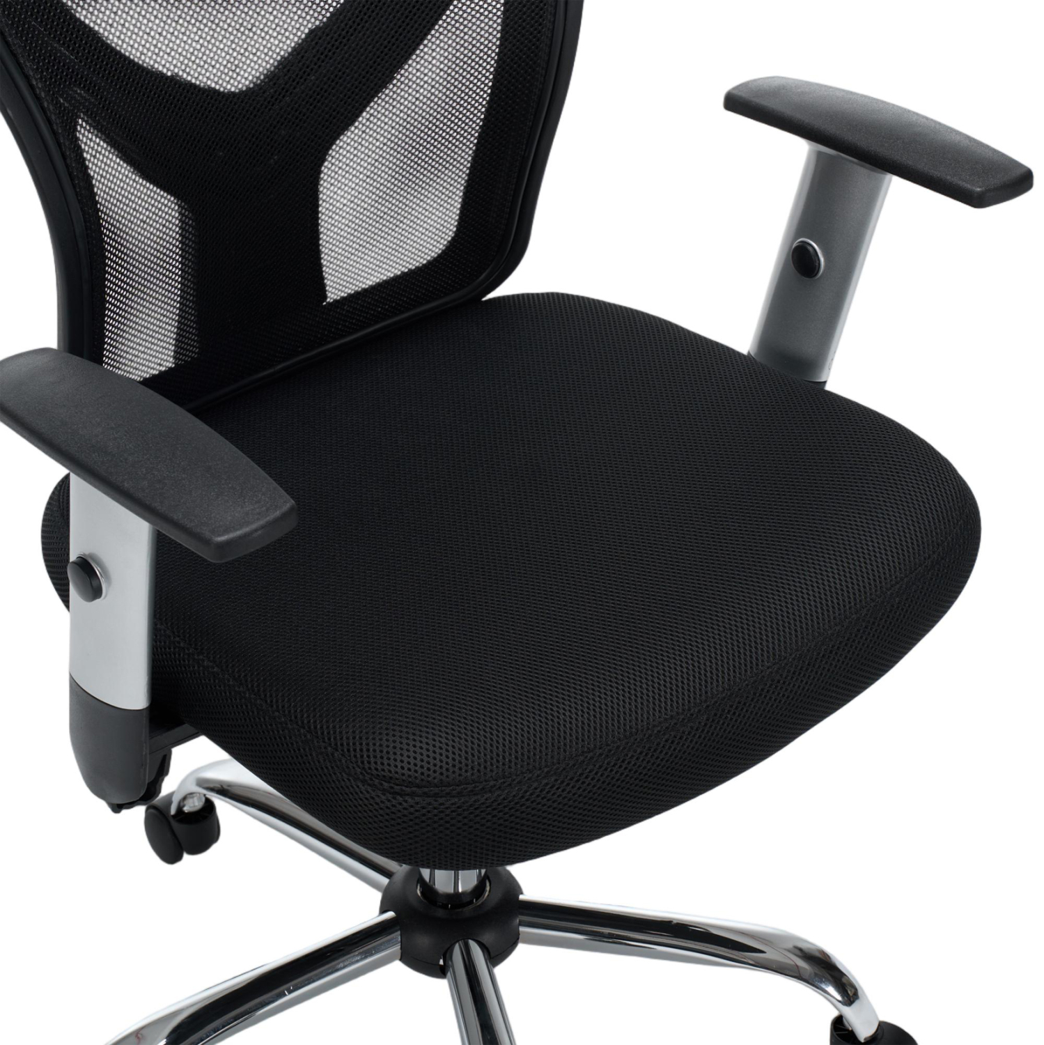 •Σκελετός σε ΜΑΥΡΟ χρώμα & μπράτσα με ρύθμιση ύψους από πολυπροπυλένιο σε ΑΣΗΜΙ χρώμα