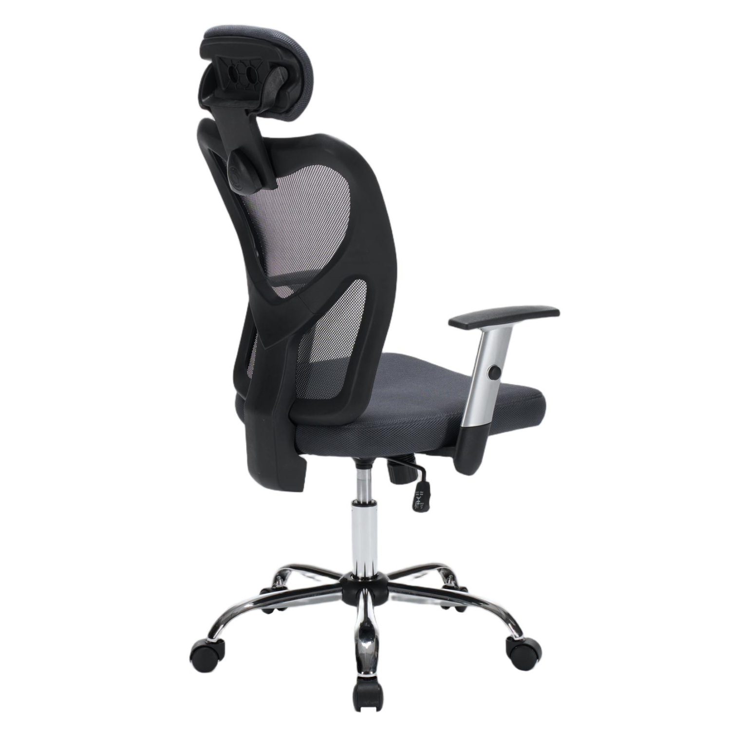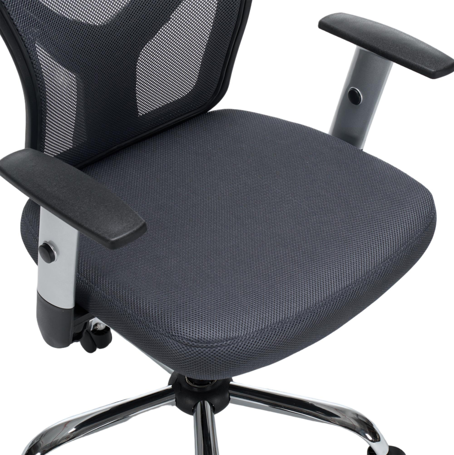 •Σκελετός σε ΜΑΥΡΟ χρώμα & μπράτσα με ρύθμιση ύψους από πολυπροπυλένιο σε ΑΣΗΜΙ χρώμα