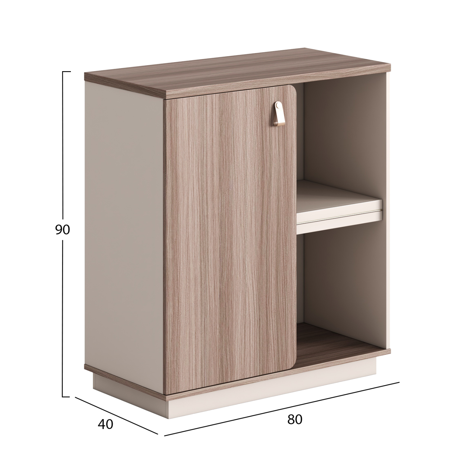 Η αριστερή πλευρά διαθέτει ντουλάπι, ενώ η δεξιά πλευρά αποτελείται από ανοιχτό χώρο αποθήκευσης τύπου βιβλιοθήκης με 1 ράφι, προσφέροντας άμεση πρόσβαση και ευελιξία στη χρήση.