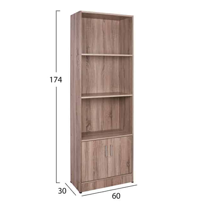 Βιβλιοθήκη γραφείου από μελαμίνη σε sonama απόχρωση, με δύο πόρτες στο κάτω μέρος.