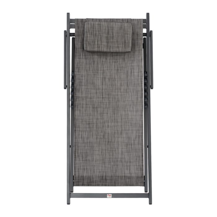 Η συγκεκριμένη, έχει κλασσικό σχεδιασμό με πλάτη που στηρίζει το σώμα και με εξτρά μαξιλάρι για το κεφάλι και σκαλιέρα 5 θέσεων. Το χρώμα της είναι ΓΚΡΙ τόσο στον σκελετό, όσο και στο textilene.