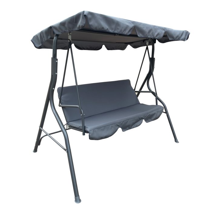Η FB95979.01 είναι η τελευταία προσθήκη στην κατηγορία της. Είναι μια 3-θέσια κούνια με σκίαστρο, ιδανική για χρήση σε μπαλκόνια, βεράντες, αυλές και κήπους. Διαχρονικά, οι κούνιες αποτελούν την επιτομή της ξεγνοιασιάς και της χαλάρωσης. Είναι κατασκευασμένη από μέταλλο σε ΓΚΡΙ χρώμα, αλλά και τα υφάσματα τόσο στα μαξιλάρια όσο και στο σκίαστρο είναι επίσης σε ΓΚΡΙ χρώμα. Όλη η κατασκευή είναι πολυτελής και θα αποτελέσει «μαγνήτη» ενδιαφέροντος, όπου κι αν τοποθετηθεί!