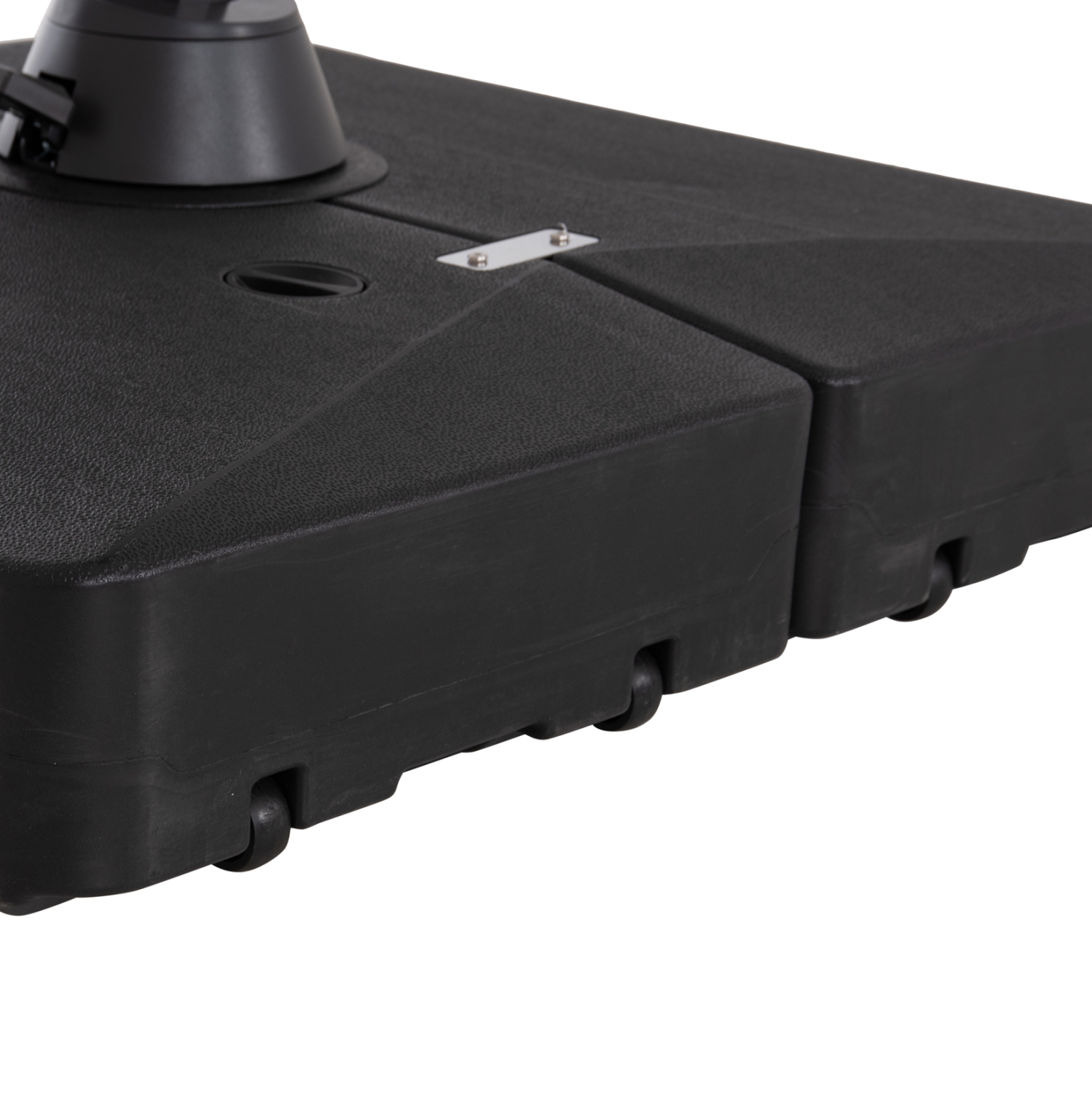 Η ομπρέλα στηρίζεται σε μια βάση νερού από ανθεκτικό ενισχυμένο P.E. (πολυαιθυλένιο), η οποία γεμίζει με νερό ή μίξη νερού και άμμου, φτάνοντας έως και 160kg βάρος, προσφέροντας ισχυρή στήριξη, ενώ διαθέτει και ροδάκια για εύκολη μεταφορά!