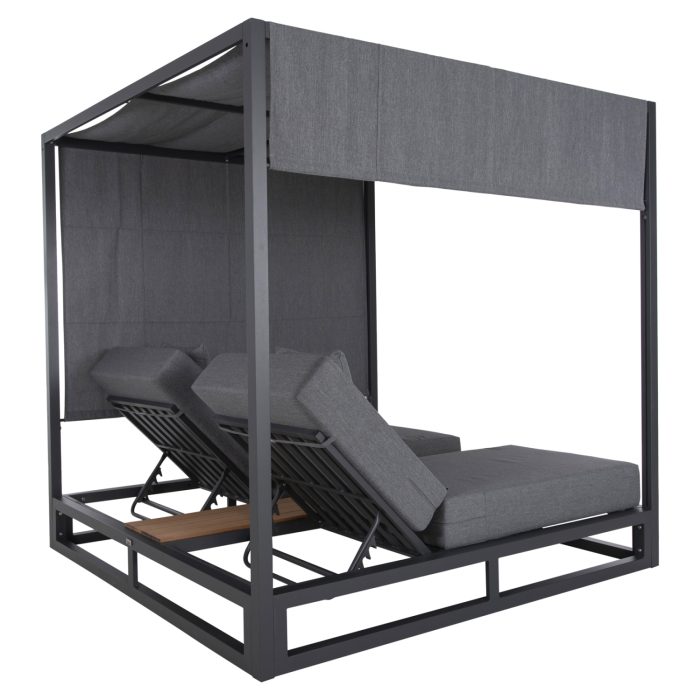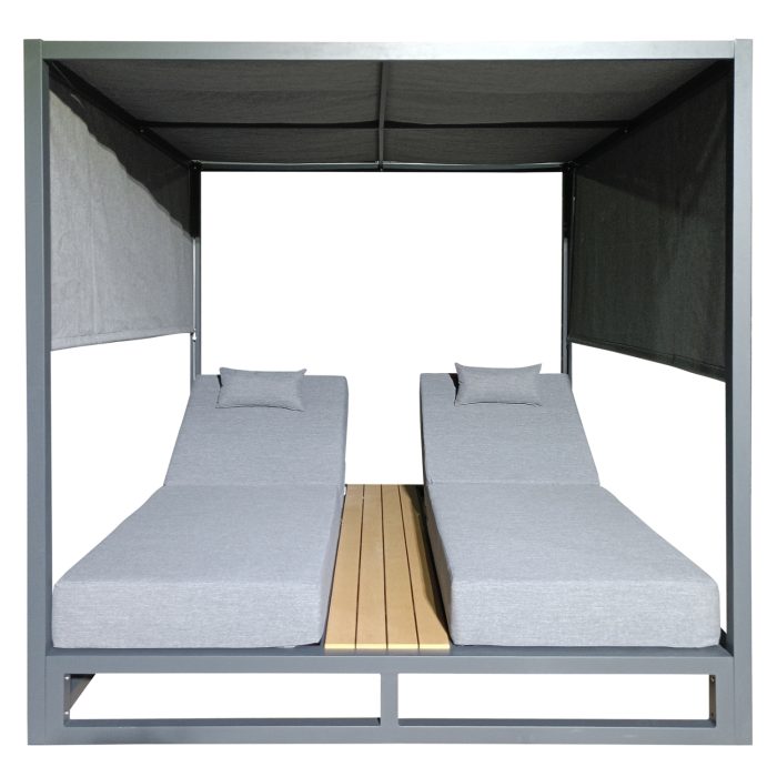 Η επαγγελματική διπλή ξαπλώστρα παραλίας FB96097.01 σε ΓΚΡΙ χρώμα, είναι μια πολυτελής πρόταση για την επιχείρησή σας. Η στιβαρή και εντυπωσιακή παρουσία της που οφείλεται στο design κύβος αλλά και στα υλικά κατασκευής της, κυριολεκτικά κλέβουν την παράσταση. Το παχύ στρώμα με τα μαξιλαράκια κεφαλής και η επιφάνεια από polywood στην μέση υπόσχονται στιγμές ξενοιασιάς και χαλάρωσης, όπως και το σκίαστρο που προστατεύει από τον ήλιο. TIP: Το σκίαστρο ανεβοκατεβαίνει στις δύο πλευρές ταυτόχρονα με απλό τράβηγμα, μιας και αποτελείται από ένα συνεχόμενο ύφασμα.
