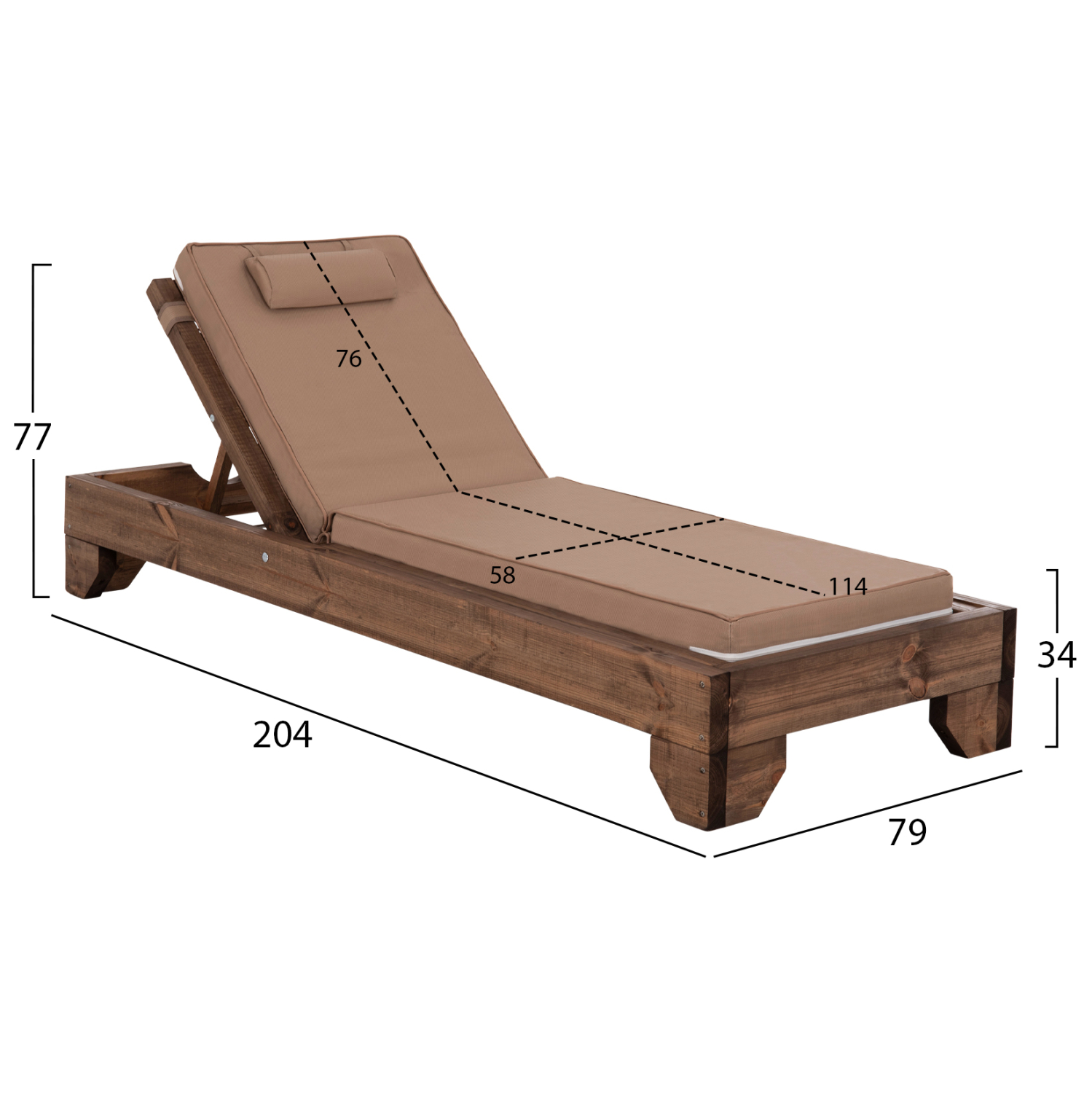 -Το μαξιλάρι που συνοδεύει την ξαπλώστρα είναι από αφρό μέτριας σκληρότητας ενώ το κάλυμμα είναι από textilene σε ΜΟΚΑ χρώμα. Δένεται στην ξαπλώστρα με κορδόνια και διαθέτει μαξιλαράκι κεφαλής.