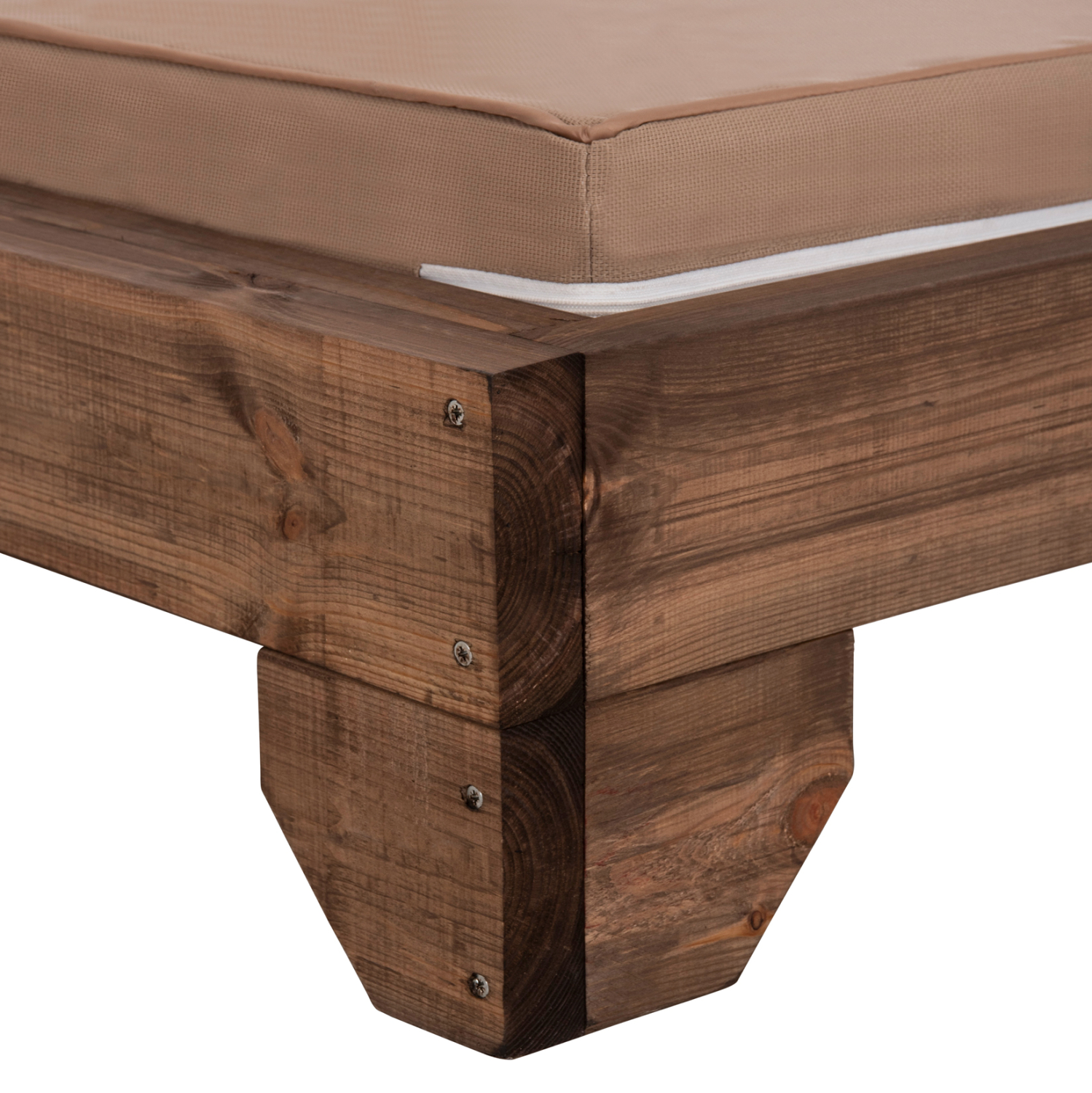 -Ολόκληρη η ξαπλώστρα έχει κατασκευαστεί από ξύλο πεύκου με εμποτισμό και επιπλέον στρώση με βερνίκι νερού. Το πεύκο είναι ένα μαλακό, λευκό ή ανοιχτό κίτρινο ξύλο το οποίο είναι ελαφρύ σε βάρος με ευθύγραμμα νερά ξύλου. Αντέχει στη συρρίκνωση, διόγκωση και κάμψη. Ο εμποτισμός υπό την ευρεία έννοια είναι ο χρωματισμός του ξύλου (συνήθως βερνίκια) με την μέθοδο της εμβάπτισης.