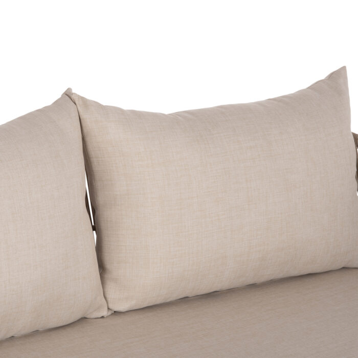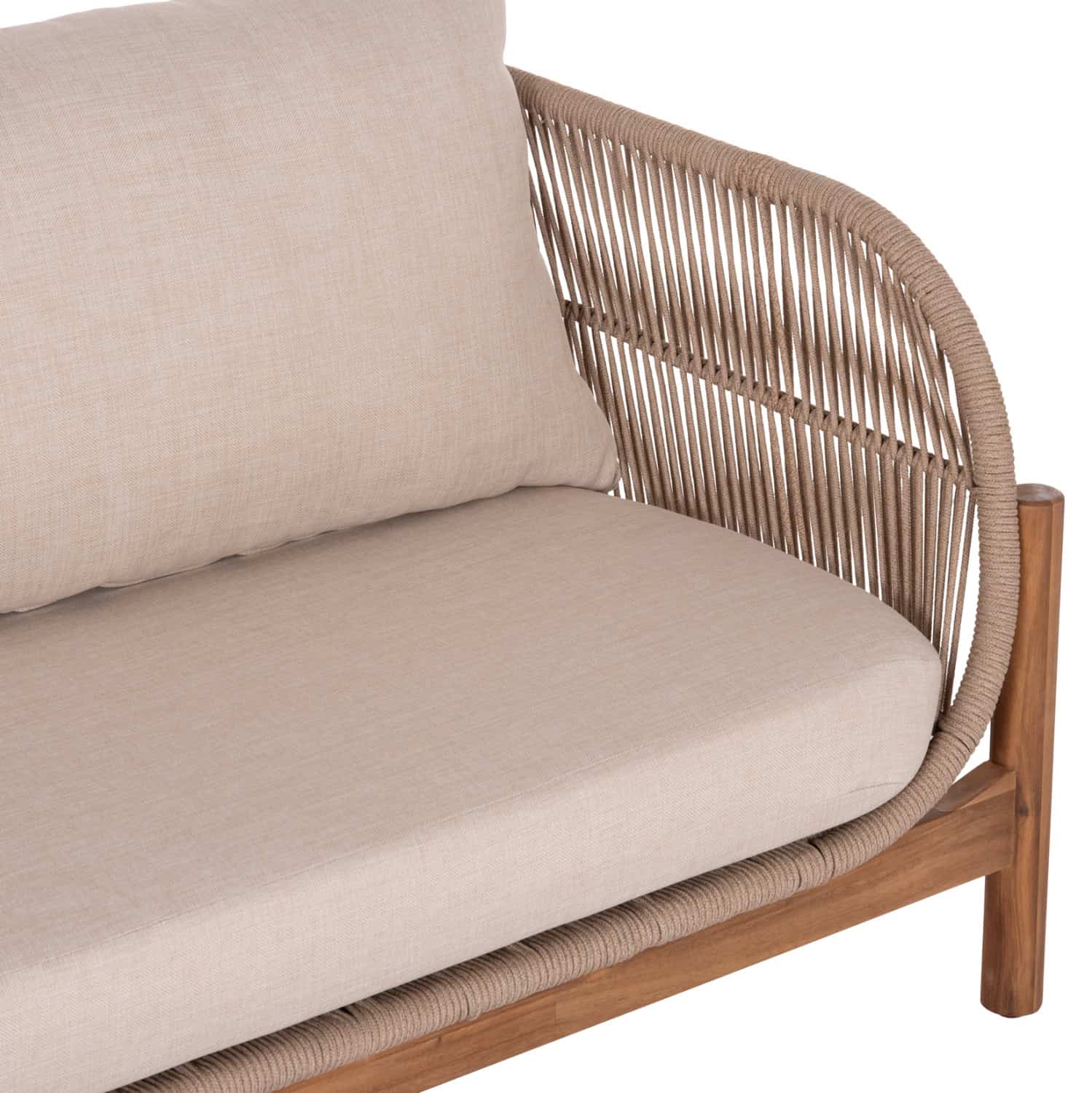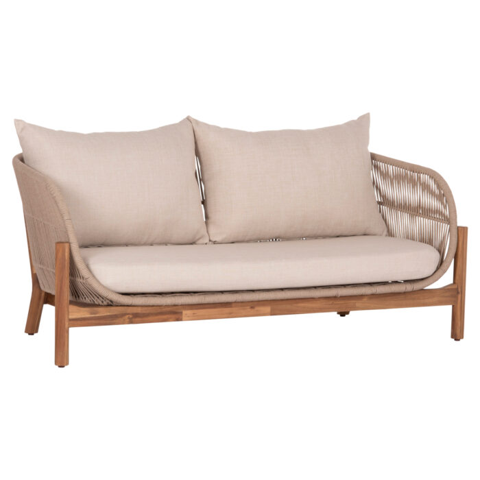 Σας παρουσιάζουμε τον 2-θέσιο καναπέ εξωτερικού χώρου FB96220. Διαθέτει σκελετό βάσης από ξύλο ακακίας σε ΦΥΣΙΚΟ χρώμα, και πλαίσιο καθίσματος από αλουμίνιο επενδυμένο με σχοινί σε ανοιχτό ΜΠΕΖ χρώμα! Τα μαξιλάρια είναι επενδυμένα με πολυεστερικό ύφασμα σε ΜΠΕΖ χρώμα επίσης, και διαθέτουν γέμισμα με μέτριας σκληρότητας αφρώδη υλικά για την μεγαλύτερη δυνατή άνεση, αλλά και φερμουάρ. Ιδανικός για να συμπληρώσει ένα σετ ανάλογης αισθητικής αλλά εννοείται ότι μπορεί να «σταθεί» και μόνος του σε οποιοδήποτε εξωτερικό χώρο!