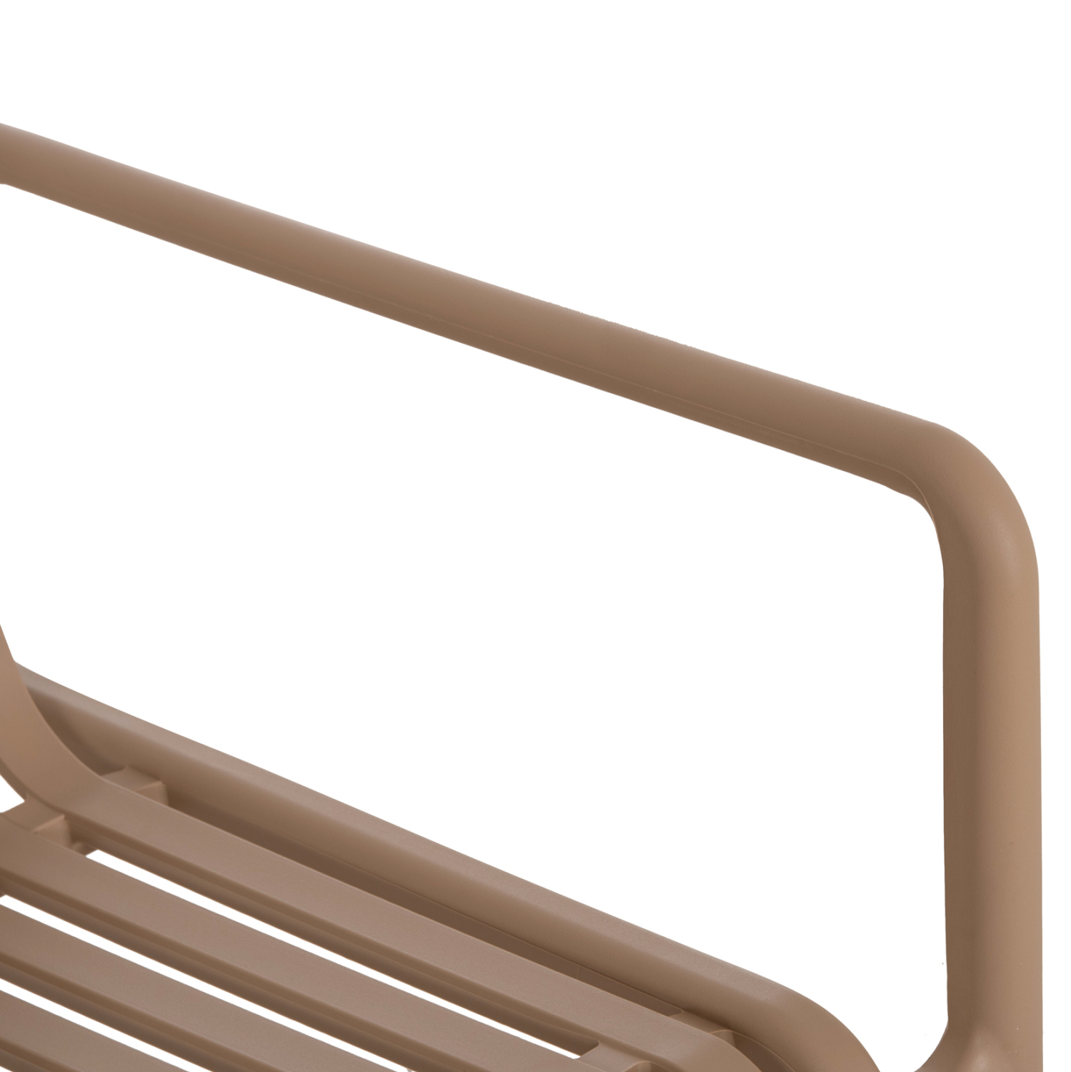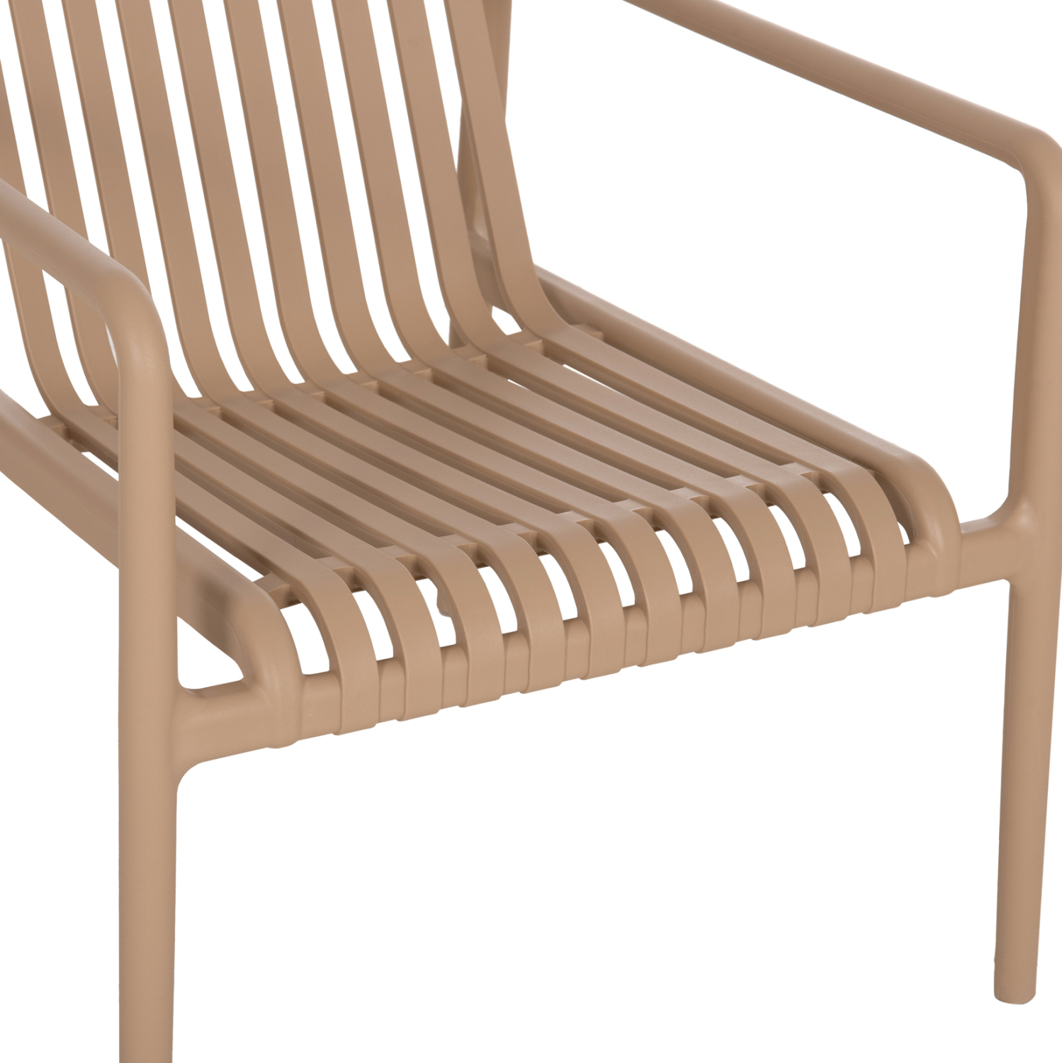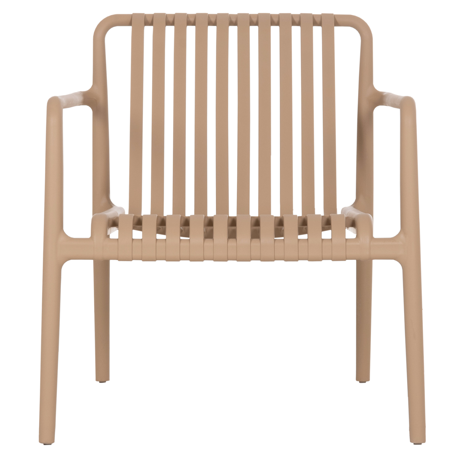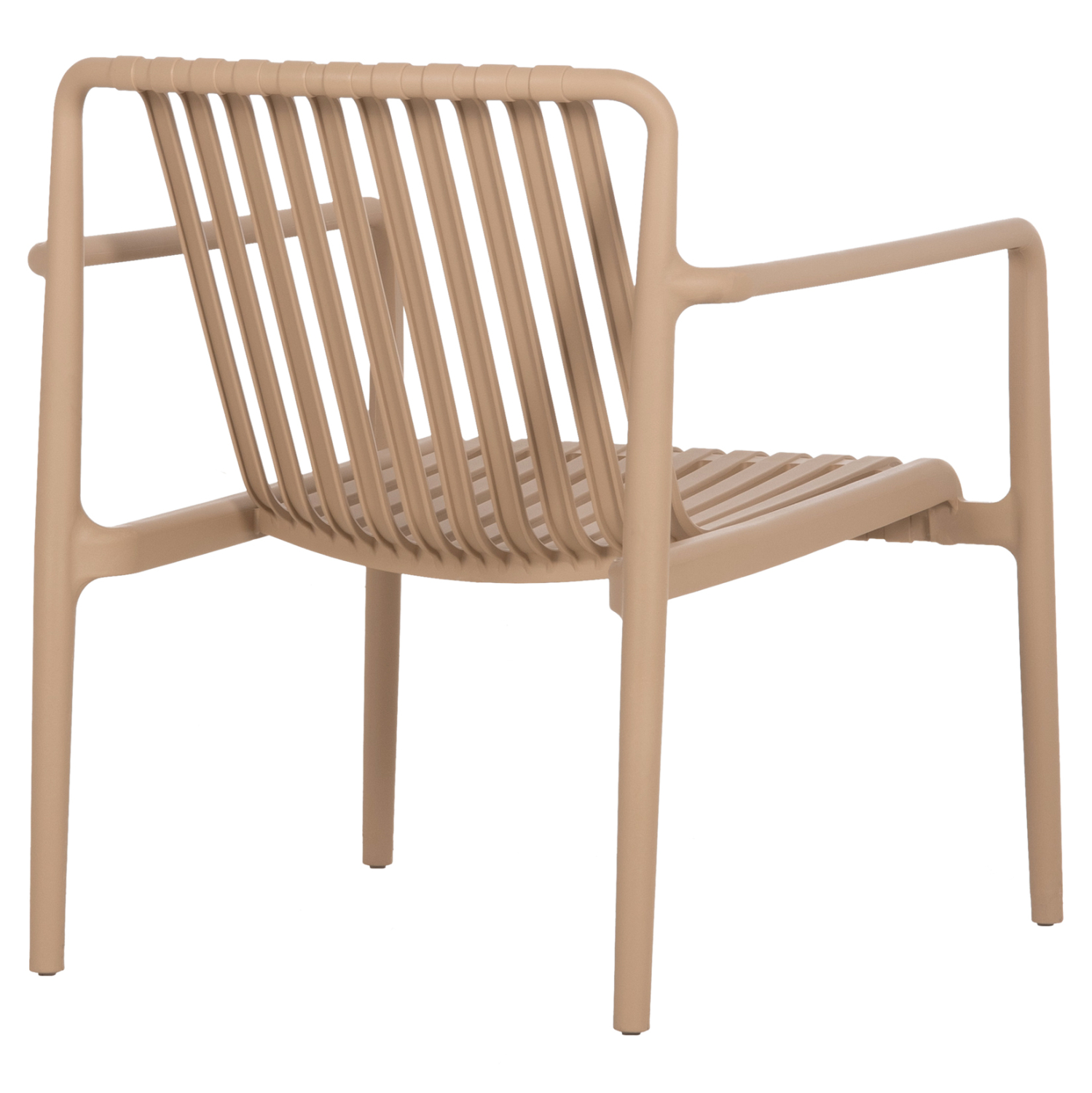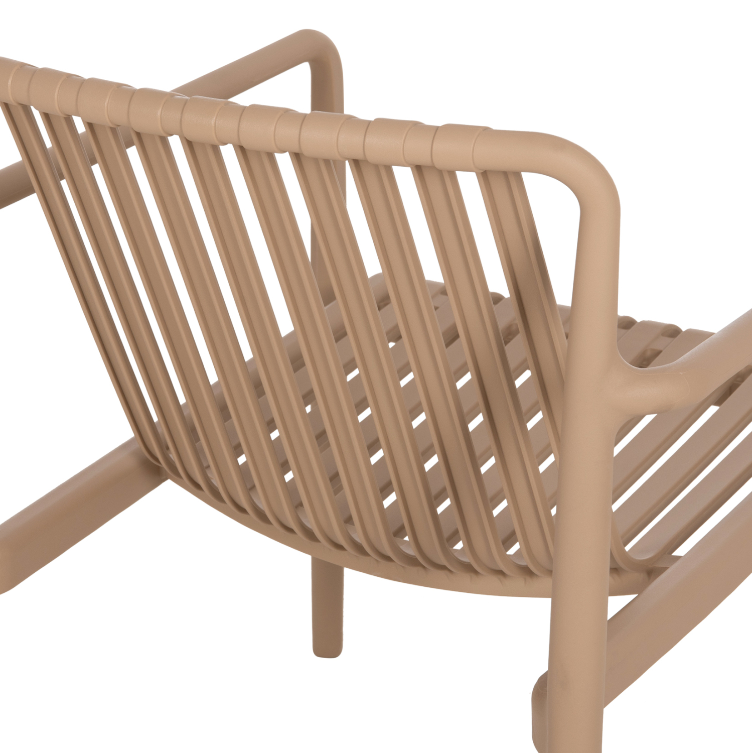 Η FB96626.04 είναι μια σύγχρονη lounge πολυθρόνα εξωτερικού χώρου με χαμηλό και αναπαυτικό ύψος καθίσματος που προσκαλεί σε στιγμές χαλάρωσης. Ο μίνιμαλ σχεδιασμός της σε καπουτσίνο απόχρωση κοσμεί κάθε βεράντα, κήπο ή επαγγελματικό χώρο φιλοξενίας, προσφέροντας καθαρές γραμμές και διαχρονική αισθητική. Ιδανική επιλογή για όσους αναζητούν ανθεκτικότητα, πρακτικότητα και κομψότητα σε ένα ενιαίο σύνολο.