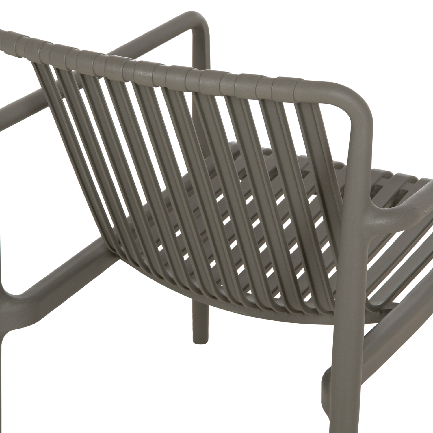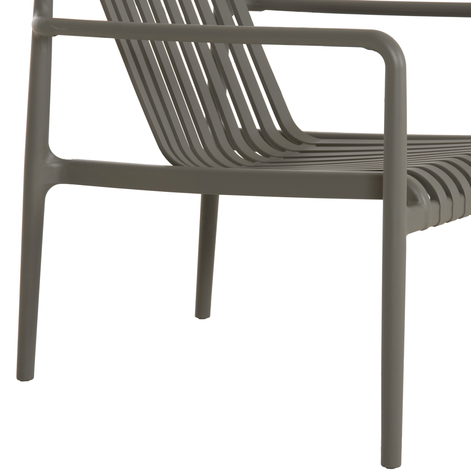 Η FB96626.05 είναι μια σύγχρονη lounge πολυθρόνα εξωτερικού χώρου με χαμηλό και αναπαυτικό ύψος καθίσματος που προσκαλεί σε στιγμές χαλάρωσης. Ο μίνιμαλ σχεδιασμός της σε OLIVE GREEN απόχρωση κοσμεί κάθε βεράντα, κήπο ή επαγγελματικό χώρο φιλοξενίας, προσφέροντας καθαρές γραμμές και διαχρονική αισθητική. Ιδανική επιλογή για όσους αναζητούν ανθεκτικότητα, πρακτικότητα και κομψότητα σε ένα ενιαίο σύνολο.