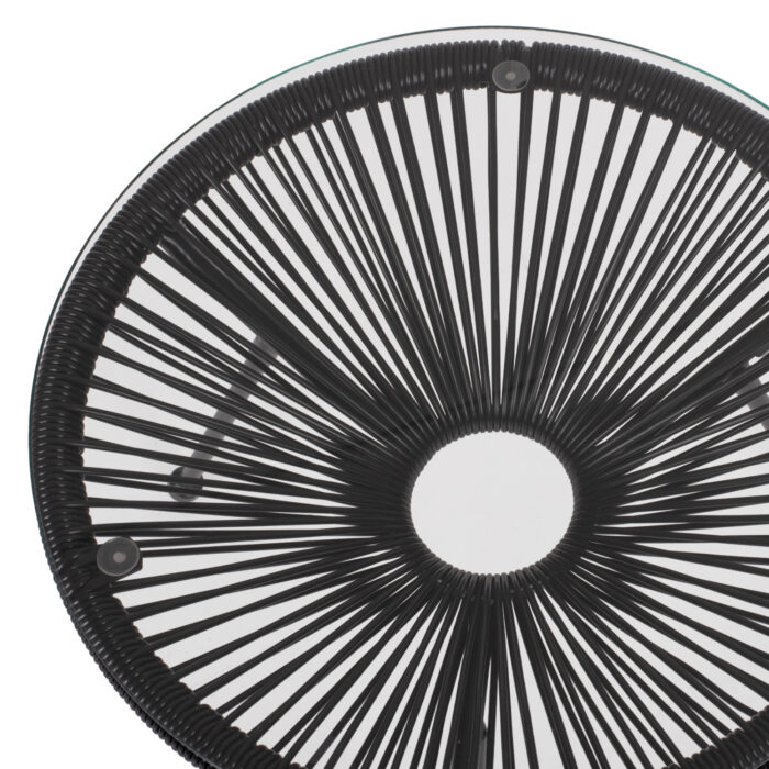 Το FB921101 είναι ένα σετ σαλονιού εξωτερικού χώρου σε εξολοκλήρου ΜΑΥΡΟ χρώμα, με στρογγυλό τραπεζάκι με γυάλινη επιφάνεια και 2 αναπαυτικές πολυθρόνες τύπου φωλιάς! Η επένδυση σε όλο το σετ είναι από P.E.RATTAN επάνω σε μαύρους μεταλλικούς σκελετούς. Το Wicker δεν είναι υλικό, είναι μέθοδος κατασκευής επίπλων κυρίως για εξωτερικούς χώρους, με βασικό υλικό το συνθετικό Rattan.