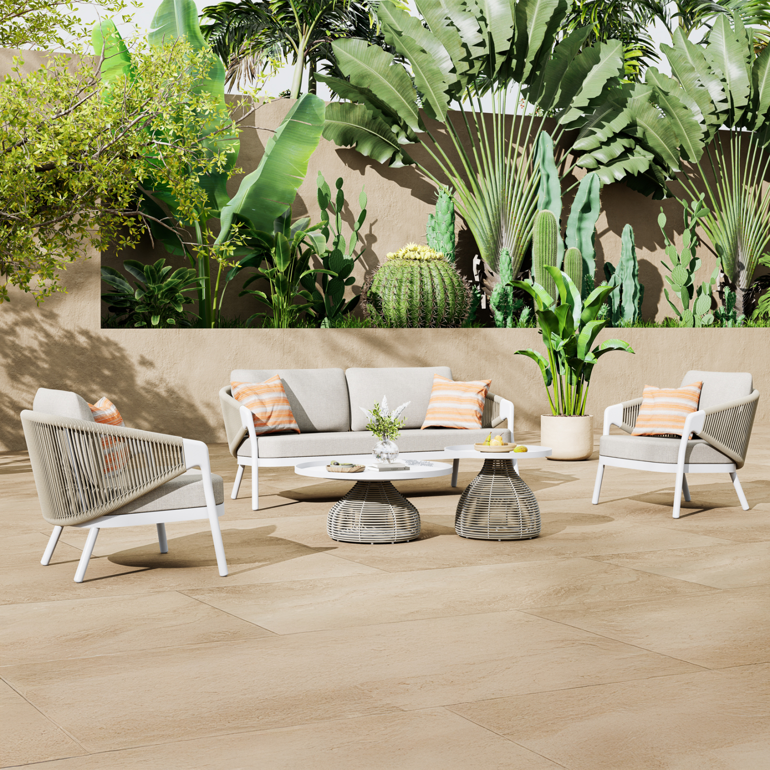 Σετ Σαλονιού Εξωτερικού Χώρου 5τμχ FB96473.02 – Κομψότητα & Αντοχή σε Απόχρωση Κρεμ Λευκό