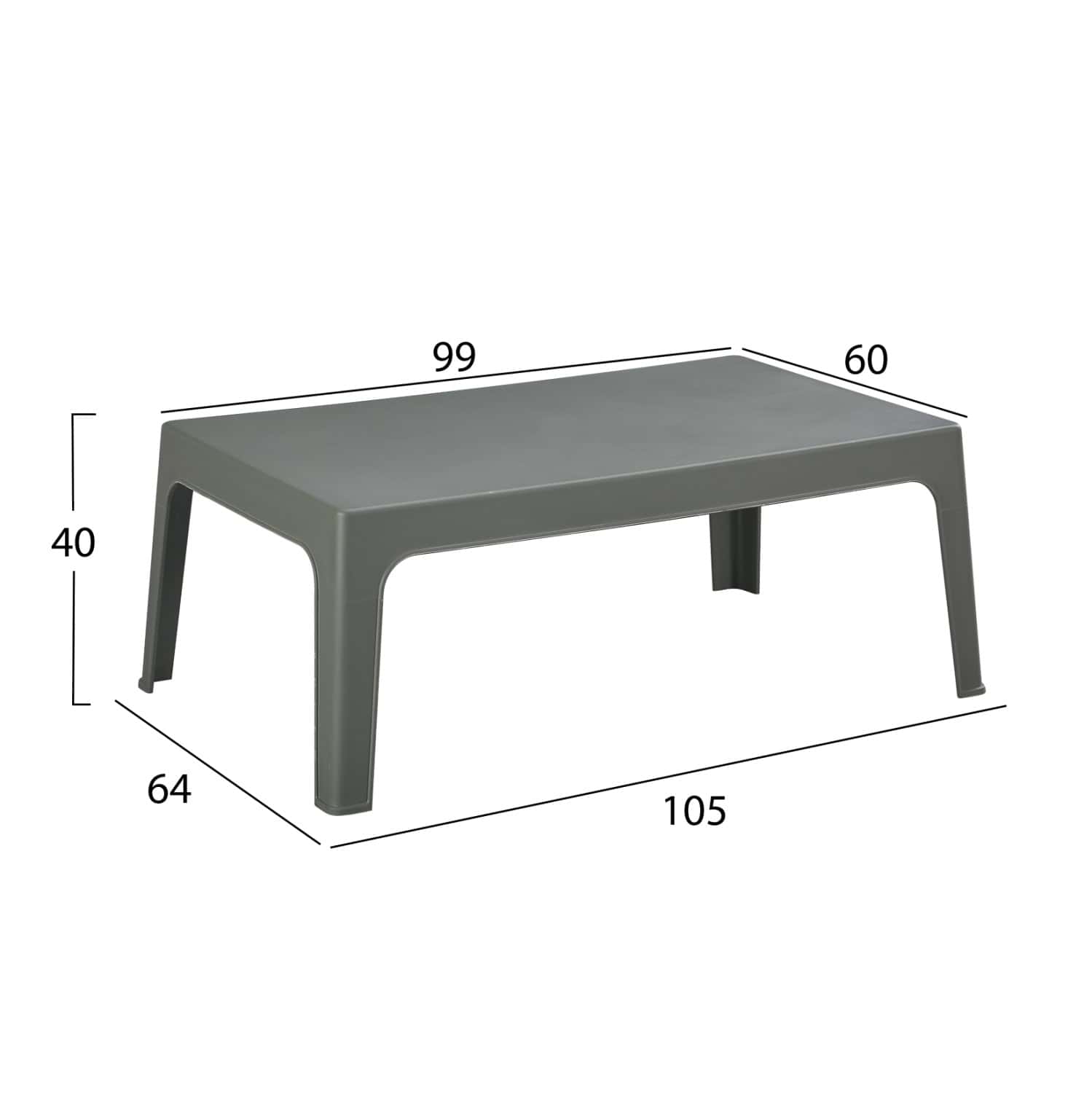 Ένα ορθογώνιο τραπεζάκι, 2 στοιβαζόμενες πολυθρόνες κι έναν 2-θέσιο καναπέ, τα οποία είναι εξολοκλήρου κατασκευασμένα από πολυπροπυλένιο σε DARK OLIVE GREEN χρώμα. Σχεδιαστικά, είναι λιτό και μπορεί να χρησιμοποιηθεί με πολλούς τρόπους προσφέροντας πρακτική και ανθεκτική χρήση. Ιδανική πρόταση για χρήση σε εξωτερικούς χώρους, είτε επαγγελματικούς (χώροι δεξιώσεων, εταιρείες catering, κλπ.) είτε για το σπίτι.