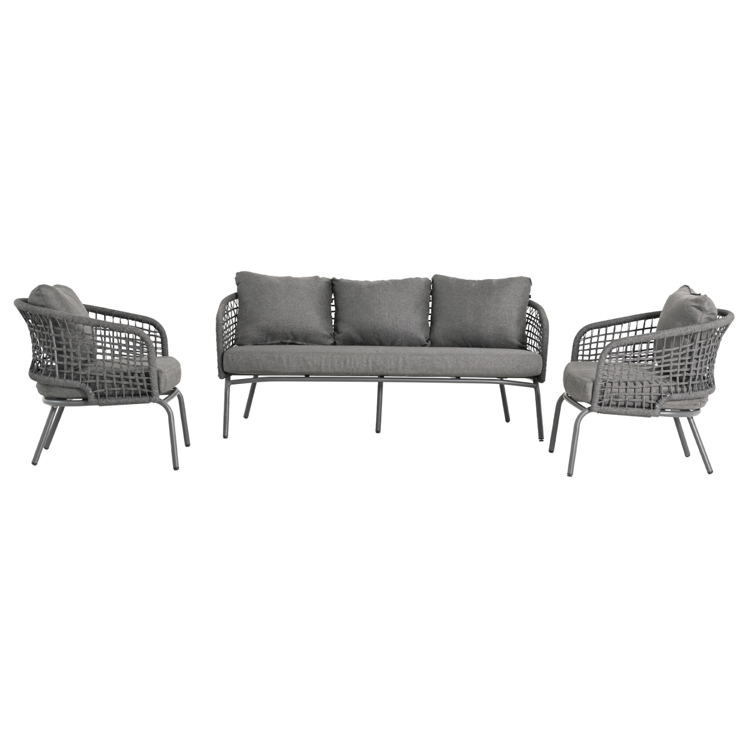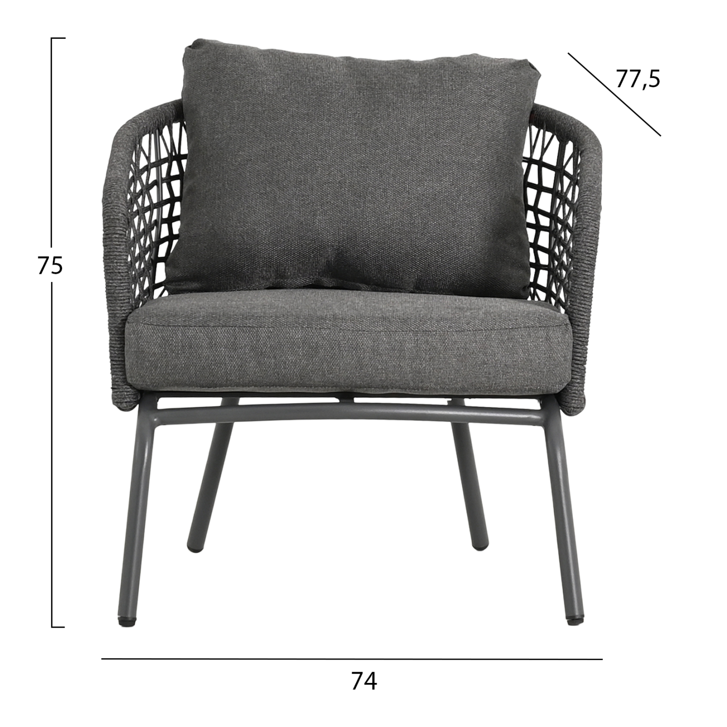 Το FB96508.01 είναι ένα υπέροχο σετ εξωτερικού χώρου που συνδυάζει σύγχρονη αισθητική με ανθεκτικά υλικά υψηλών προδιαγραφών. Ο ελαφρύς σκελετός από αλουμίνιο σε ΓΚΡΙ απόχρωση προσφέρει αυξημένη αντοχή στη διάβρωση και σταθερότητα, ενώ η επένδυση με σχοινί στο ίδιο χρώμα χαρίζει φυσική υφή και διαχρονική κομψότητα.