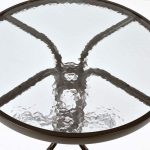 Ένα τραπέζι μεταλλικό εξωτερικού χώρου σε χρώμα καφέ, με ενσωματωμένο τζαμί ασφάλειας (secure).