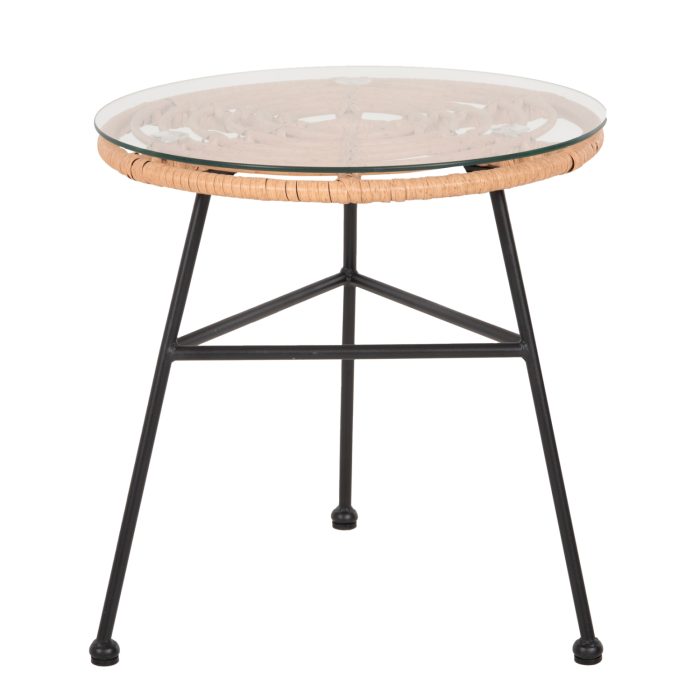 ΤΡΑΠΕΖΑΚΙ ΣΤΡΟΓΓΥΛΟ ΜΑΥΡΟ ΜΕΤΑΛΛΙΚΟ FB95459.11 ΜΠΕΖ WICKER-ΓΥΑΛΙ Φ45×46Υεκ