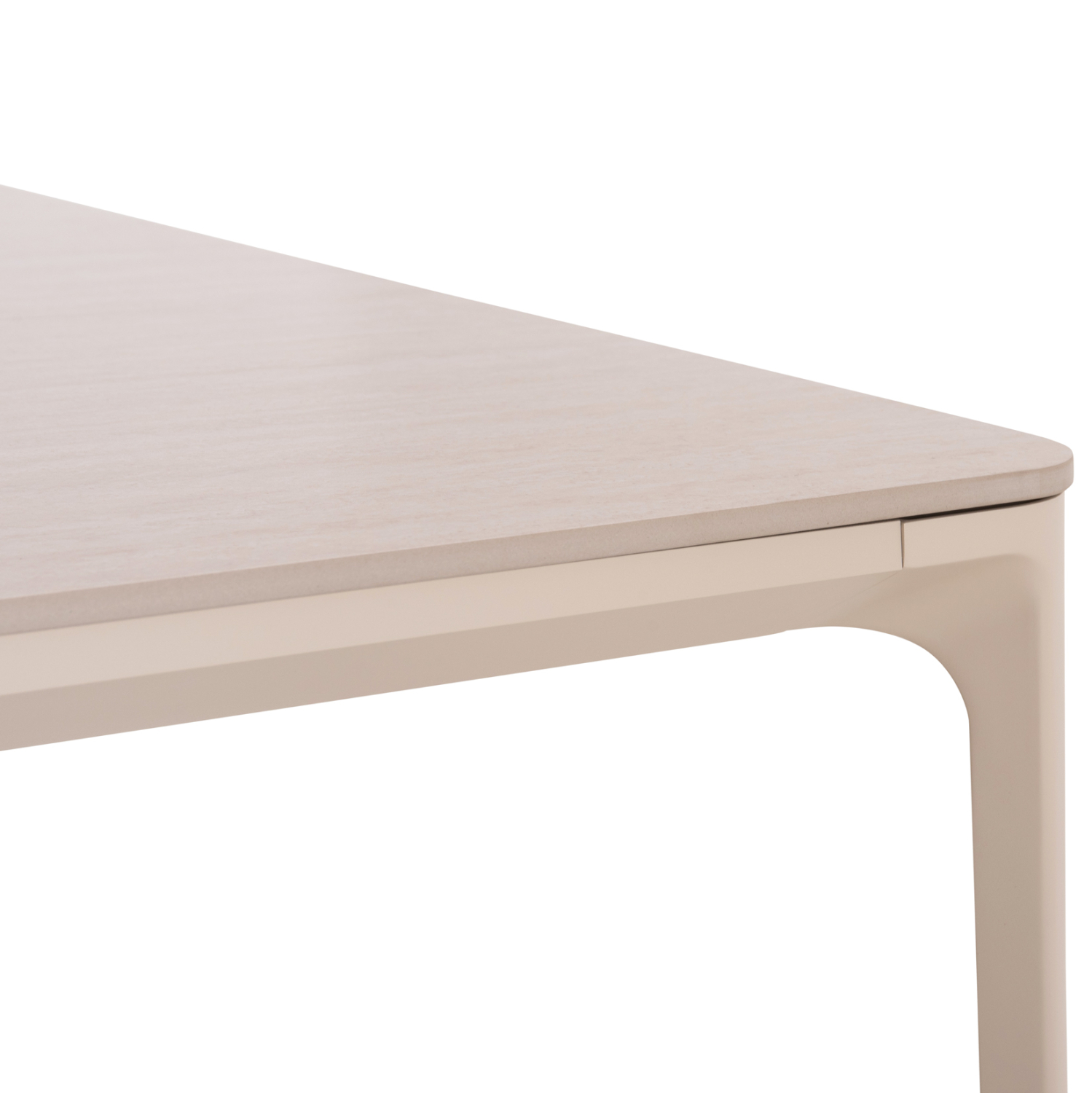 Αναβαθμίστε τον εξωτερικό σας χώρο με το κομψό ορθογώνιο τραπέζι τραπεζαρίας FB96557.02, ιδανικό για 6-8 άτομα. Ο ανθεκτικός σκελετός και τα πόδια από αλουμίνιο σε ΜΠΕΖ προσφέρουν σταθερότητα και μοντέρνα αισθητική. Η επιφάνεια από sintered stone σε ΛΕΥΚΟ χρώμα εξασφαλίζει υψηλή αντοχή σε καιρικές συνθήκες, γρατζουνιές και θερμότητα. Ιδανική επιλογή για κήπο, βεράντα ή patio με minimal design. Επιλέξτε ένα τραπέζι εξωτερικού χώρου που συνδυάζει στυλ, ποιότητα και πρακτικότητα.