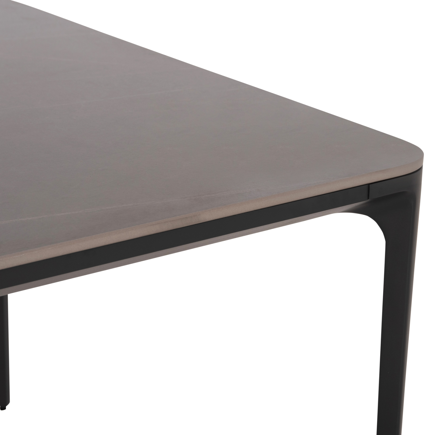 Αναβαθμίστε τον εξωτερικό σας χώρο με το μεγάλο ορθογώνιο τραπέζι τραπεζαρίας FB96558.01, ιδανικό για 8 άτομα. Ο ανθεκτικός σκελετός και τα πόδια από αλουμίνιο σε σκούρο γκρι προσφέρουν σταθερότητα και μοντέρνα αισθητική. Η επιφάνεια από sintered stone σε γκρι χρώμα εξασφαλίζει υψηλή αντοχή σε καιρικές συνθήκες, γρατζουνιές και θερμότητα. Ιδανική επιλογή για κήπο, βεράντα ή patio με minimal design. Επιλέξτε ένα τραπέζι εξωτερικού χώρου που συνδυάζει στυλ, ποιότητα και πρακτικότητα.