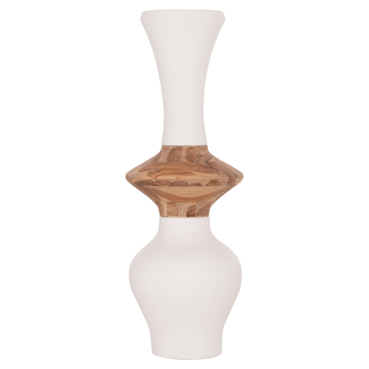 Το χειροποίητο διακοσμητικό βάζο δαπέδου FB94660.02S είναι ένα πολύ ιδιαίτερο διακοσμητικό στοιχείο για κάθε χώρο. Είναι κατασκευασμένο εξολοκλήρου από Fiber Cement σε ΛΕΥΚΟ χρώμα με διακόσμηση στον λαιμό από ποιοτικό ξύλο Teak, ενώ το ύψος του το καθιστά επιβλητικό στον χώρο. Ιδανικό για πληθώρα χρήσεων και χώρων.