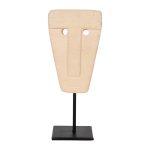 Το επιτραπέζιο διακοσμητικό FB94312 θα δώσει μια άλλη «αύρα» στον χώρο σας. Πρόκειται για ένα μακρόστενο προσωπείo, σε ΦΥΣΙΚΗ απόχρωση, τοποθετημένο σε ένα ΜΑΥΡΟ μεταλλικό stand. Αυτό που κάνει όμως το FB94312 να ξεχωρίζει είναι η σημειολογία του. Είναι κατασκευασμένο από PARAS STONE, το οποίο στα ελληνικά αποδίδεται ως «τυχερή πέτρα» και λέγεται ότι φέρνει τύχη στον κάτοχό του. Προέρχεται από την Ινδική μυθολογία στην οποία το PARAS STONE είχε την ιδιότητα να μετατρέπει οποιοδήποτε αντικείμενο σε χρυσό.