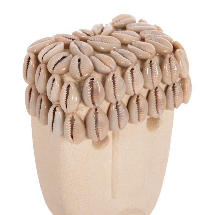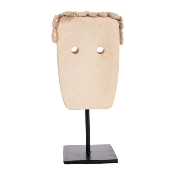 Το επιτραπέζιο διακοσμητικό FB94313 θα δώσει μια άλλη «αύρα» στον χώρο σας. Πρόκειται για ένα μακρόστενο προσωπείο με κοχύλια, σε ΦΥΣΙΚΗ απόχρωση, τοποθετημένο σε ένα ΜΑΥΡΟ μεταλλικό stand. Αυτό που κάνει όμως το FB94313 να ξεχωρίζει είναι η σημειολογία του. Είναι κατασκευασμένο από PARAS STONE, το οποίο στα ελληνικά αποδίδεται ως «τυχερή πέτρα» και λέγεται ότι φέρνει τύχη στον κάτοχό του. Προέρχεται από την Ινδική μυθολογία στην οποία το PARAS STONE είχε την ιδιότητα να μετατρέπει οποιοδήποτε αντικείμενο σε χρυσό.