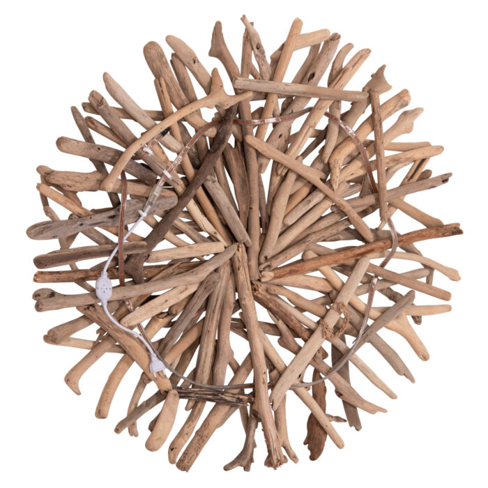 Το διακοσμητικό έχει γίνει από driftwood. Πρόκειται για κομμάτια ξύλου που έχουν ξεβραστεί σε μια ακτή ή παραλία μιας θάλασσας, λίμνης ή ποταμού από τη δράση των ανέμων, της παλίρροιας ή των κυμάτων. Αυτά τα κομμάτια συλλέγονται, και υπόκεινται σε επεξεργασία προκειμένου να χρησιμοποιηθούν για διάφορους σκοπούς.