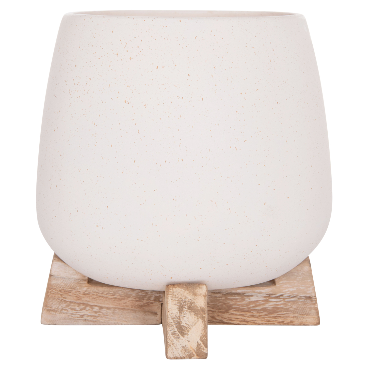 Η μικρή γλάστρα FB94674.02S είναι κατασκευασμένη από Fiber Cement σε ΛΕΥΚΟ χρώμα. Το ιδιαίτερο χαρακτηριστικό της είναι ότι συνοδεύεται από όμορφη και πρακτική βάση από ξύλο teak.