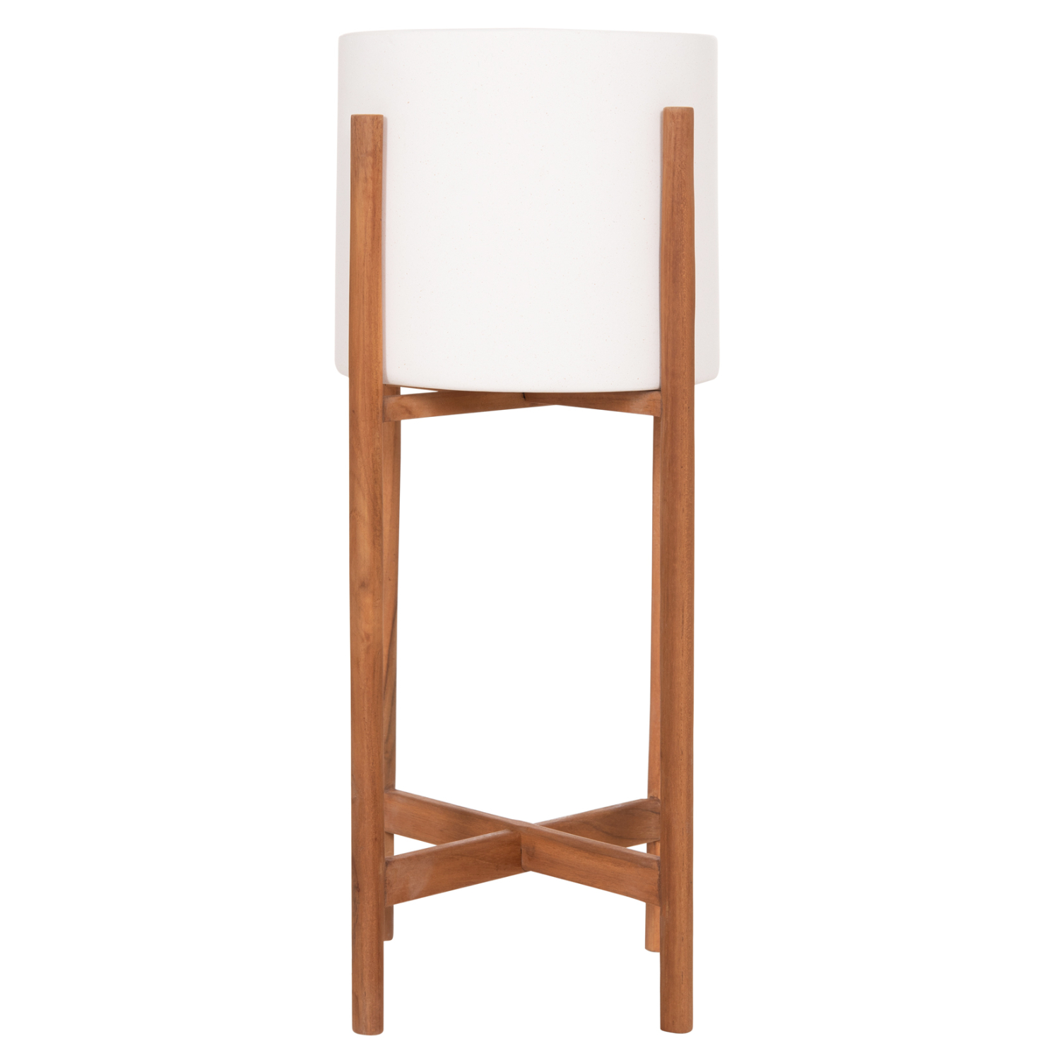 Η γλάστρα εσωτερικού χώρου (κασπό) FB94684.02S είναι κατασκευασμένη από Fiber Cement σε ΛΕΥΚΟ χρώμα. Το ιδιαίτερο χαρακτηριστικό της είναι ότι συνοδεύεται και τοποθετείται σε μια μεσαίου ύψους χιαστί βάση από ξύλο teak. Συνιστάται η τοποθέτηση εσωτερικού δοχείου εάν πρόκειται να την χρησιμοποιήσετε με νερό!