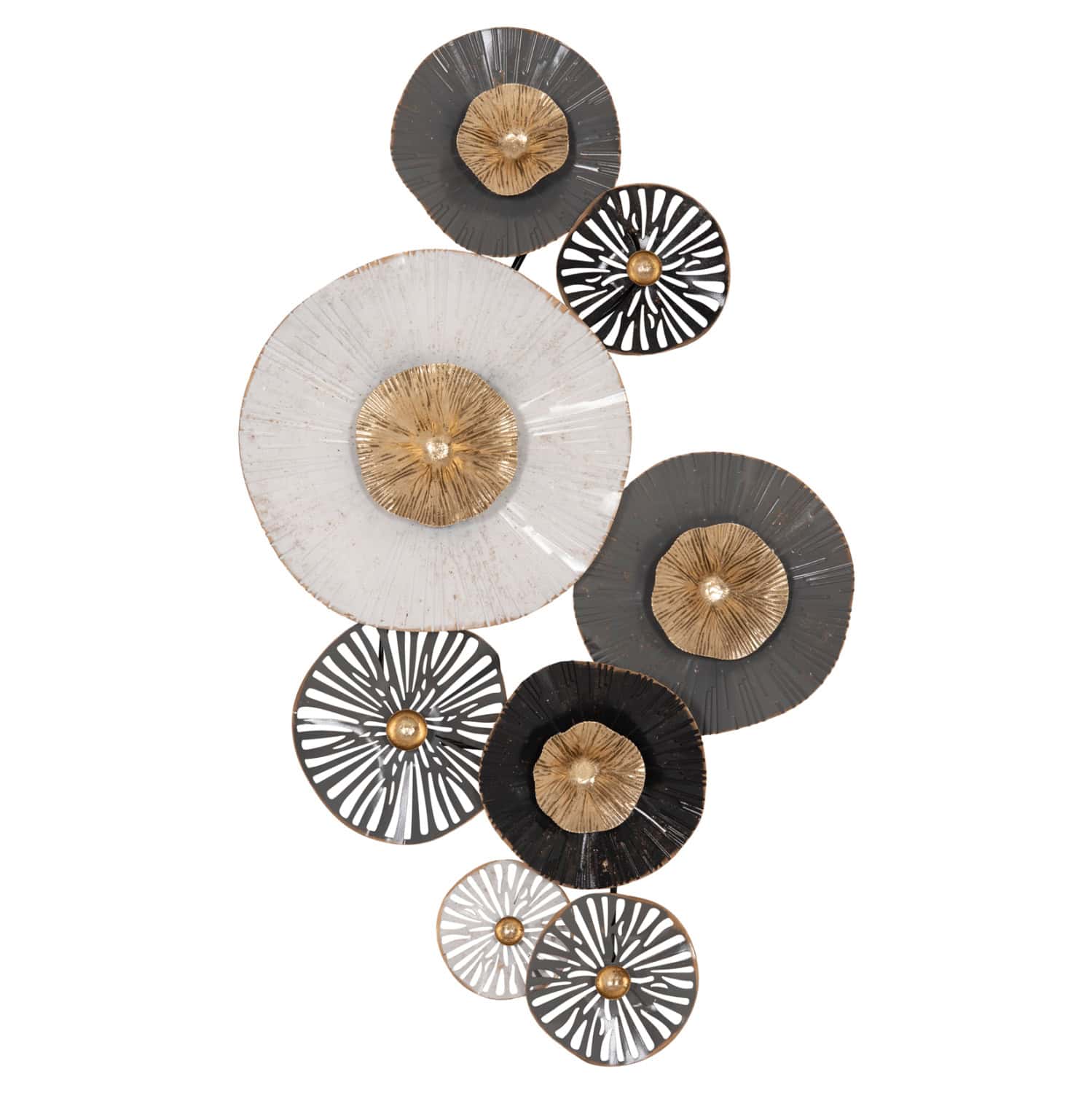 Μεταλλικό διακοσμητικό τοίχου σε γκρι και εκρού απόχρωση με χρυσές και ανθρακί λεπτομέρειες.