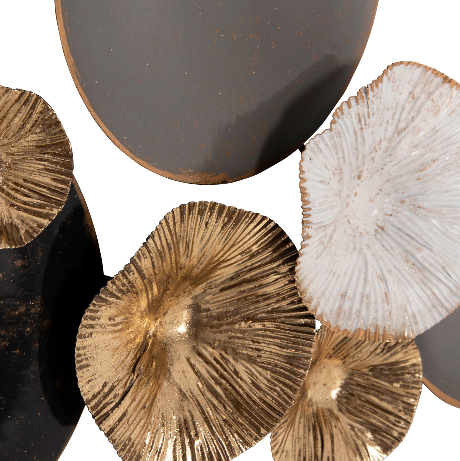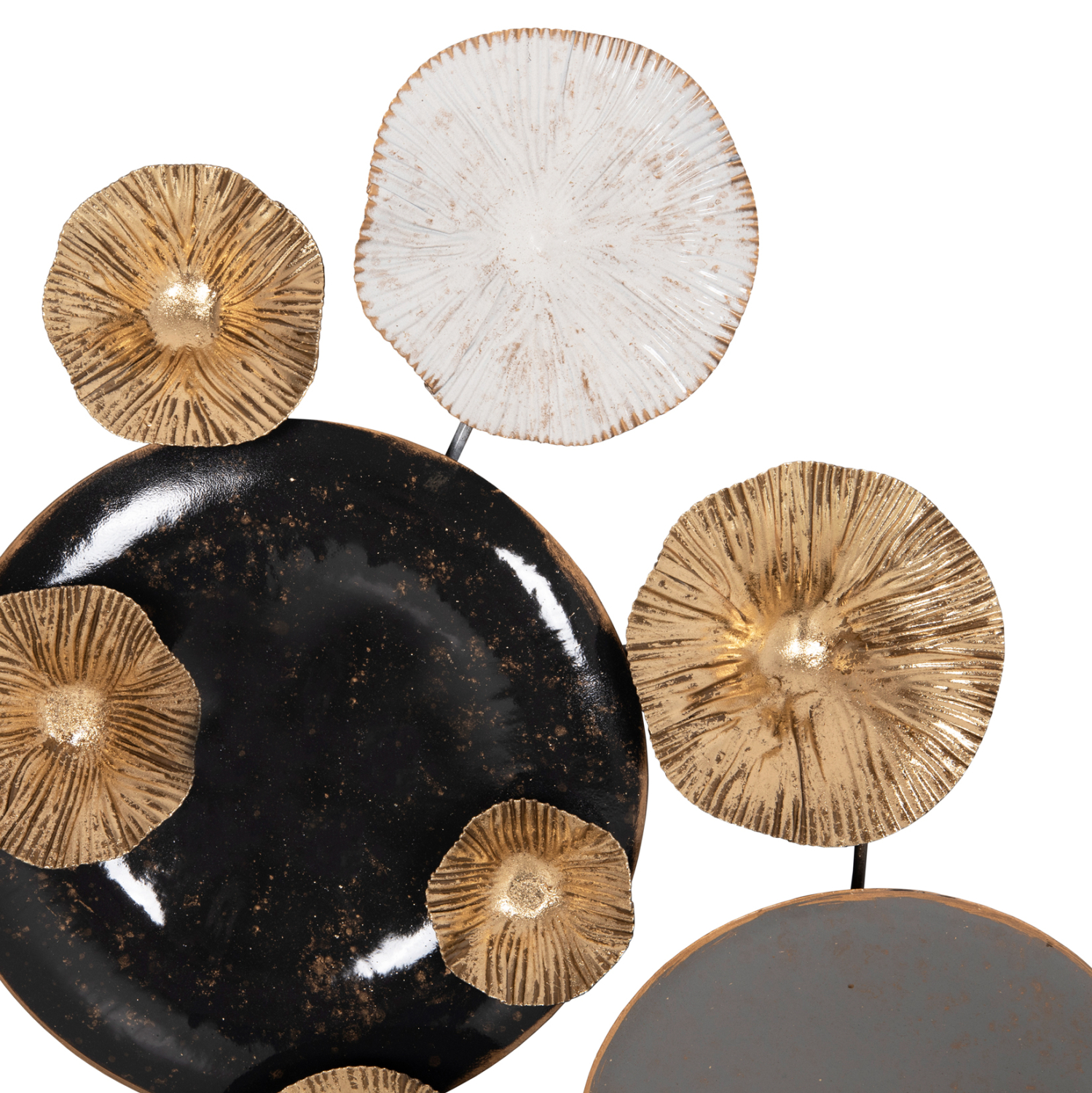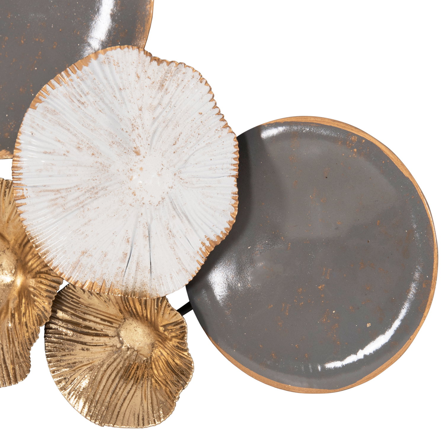 Διακοσμητικό τοίχου κατασκευασμένο από μέταλλο σε γκρι και χρυσή απόχρωση με εκρού και μαύρες λεπτομέρειες.