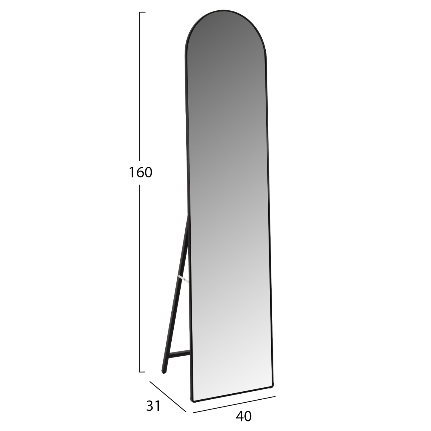 Ο FB99578.01 είναι ένας καθρέφτης δαπέδου με ΜΑΥΡΟ σκελετό, κομψός και σε άκρως ικανοποιητική διάσταση. Ένα χρήσιμο «εργαλείο» για κάθε υπνοδωμάτιο που θα ταιριάξει με την διακόσμηση σας, είτε είναι κλασική είτε πιο μοντέρνα. Η στήριξη γίνεται με μια πτυσσόμενη αλουμινένια διάταξη. Ο καθρέφτης στο επάνω μέρος του έχει αψιδωτό σχεδιασμό.