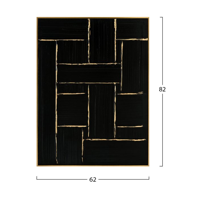 Ανάμεσα σε όλα τα διακοσμητικά στοιχεία, τα έργα τέχνης και ειδικά οι πίνακες ζωγραφικής παίζουν εξέχοντα ρόλο: όχι μόνο προσθέτουν χρώμα και αισθητική ομορφιά, αλλά δίνουν επίσης βάθος και νόημα στον χώρο μας. Ένας πίνακας μεταμορφώνει τον τρόπο που αντιλαμβανόμαστε έναν χώρο. Διακοσμήστε, λοιπόν, τον χώρο σας με έναν από τους καινούργιους πίνακες που προστέθηκαν στην γκάμα μας! Αυτός ο πίνακας είναι ζωγραφισμένος 100% με το χέρι σε ΜΑΥΡΟ καμβά με ΧΡΥΣΕΣ γραμμές. Η κορνίζα είναι ΜΠΕΖ από πολυστυρένιο.