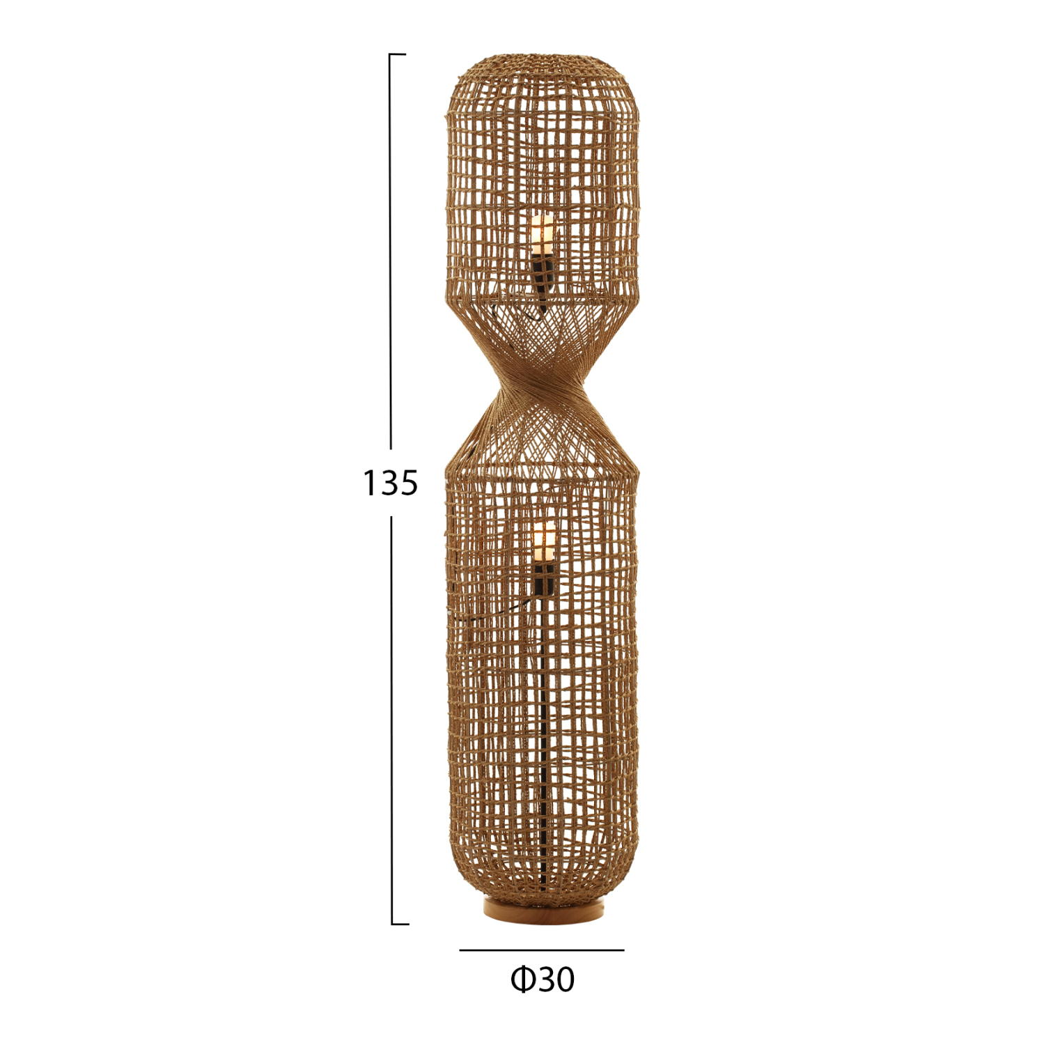 Ανακαλύψτε αυτή την νέα προσθήκη στην γκάμα των φωτιστικών μας. Πρόκειται για ένα ψηλό φωτιστικό δαπέδου σε σχήμα μακρόστενης κλεψύδρας που δέχεται 2 λάμπες. Ο σκελετός είναι μεταλλικός αλλά αυτό που κυριαρχεί είναι η επένδυση με paper rope εξαιρετικής ποιότητας σε ΚΑΦΕ χρώμα. Ένα όμορφο φωτιστικό δαπέδου που διαχέει το φως προς κάθε κατεύθυνση και δημιουργεί την ατμόσφαιρα που πάντα φανταζόσασταν για τον χώρο σας, έτσι ώστε να φτιάξετε την δική σας γωνιά χαλάρωσης ή ακόμα και διακόσμησης. Διότι το φως, σημαίνει κάτι περισσότερο από ένα φωτιστικό. Σημαίνει διακόσμηση, ατμόσφαιρα, τέχνη, μεράκι, και φυσικά επιστήμη.