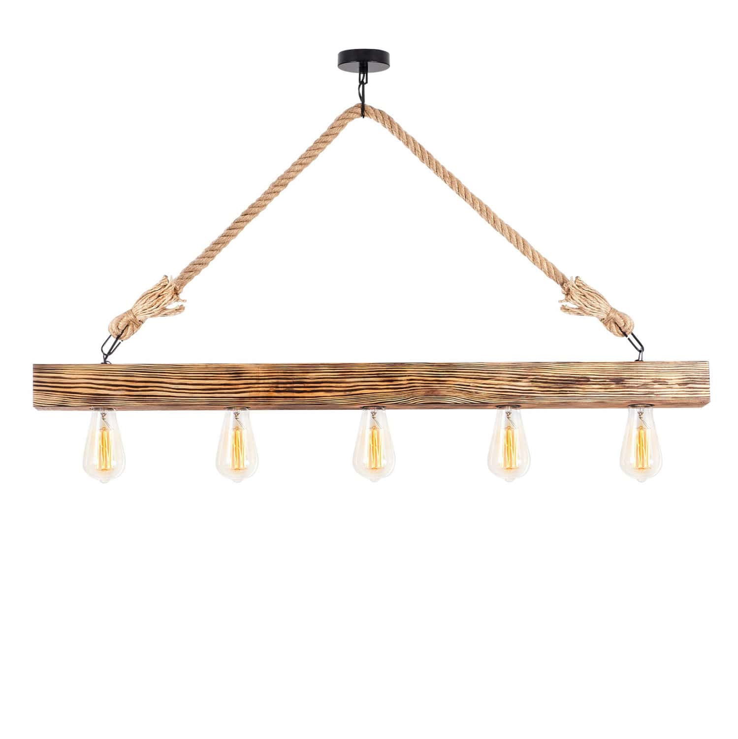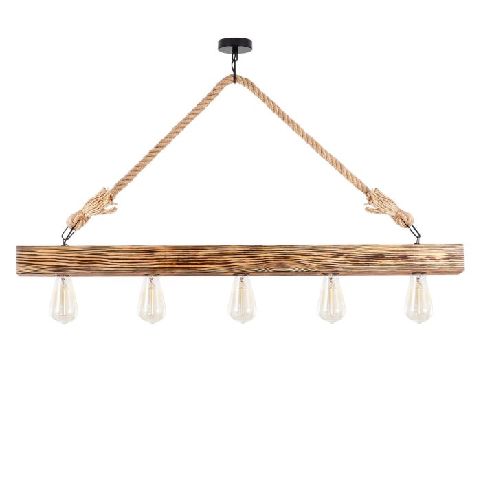 Φωτιστικό οροφής industrial αλλά και rustic στιλ. Κατασκευασμένο από ξύλινη ράγα φυσικού χρώματος και σχοινί σε φυσική απόχρωση.