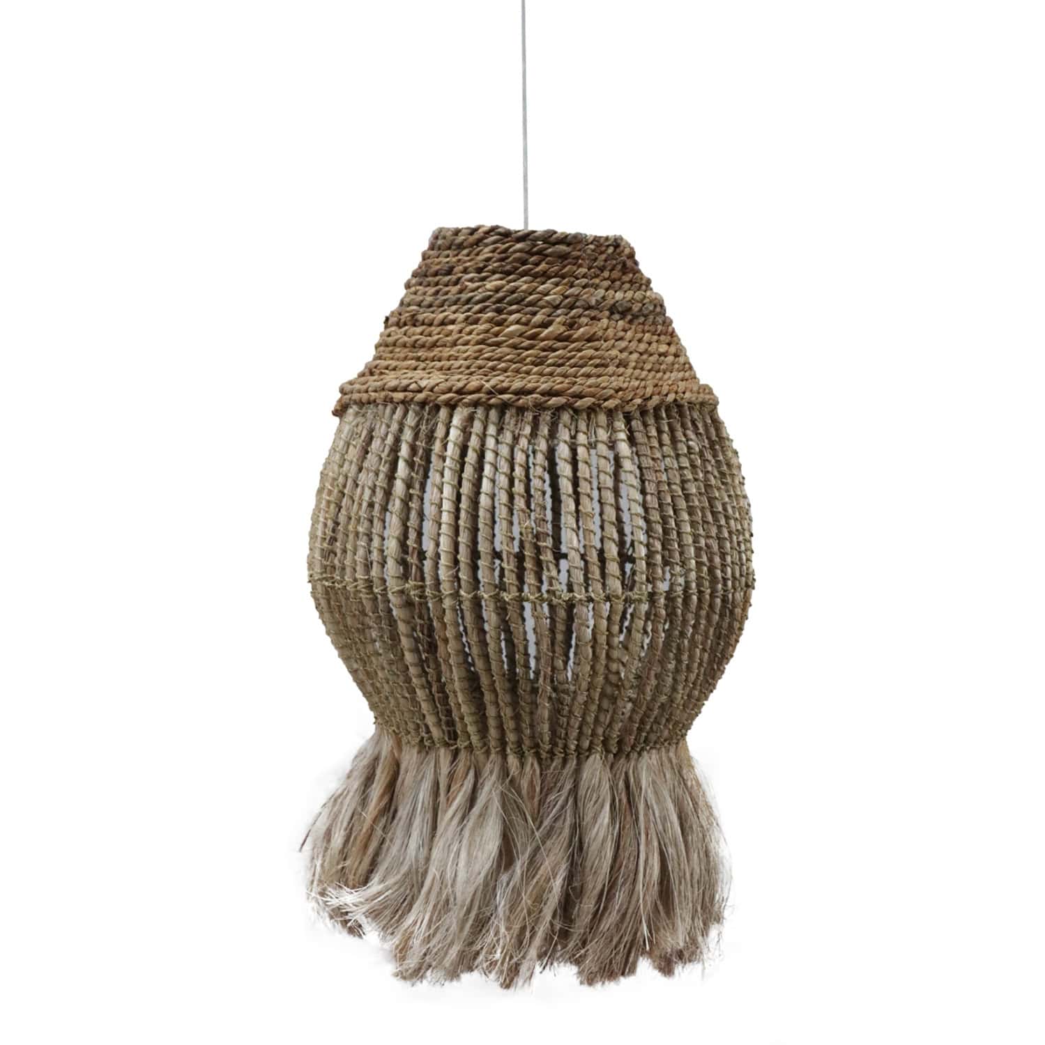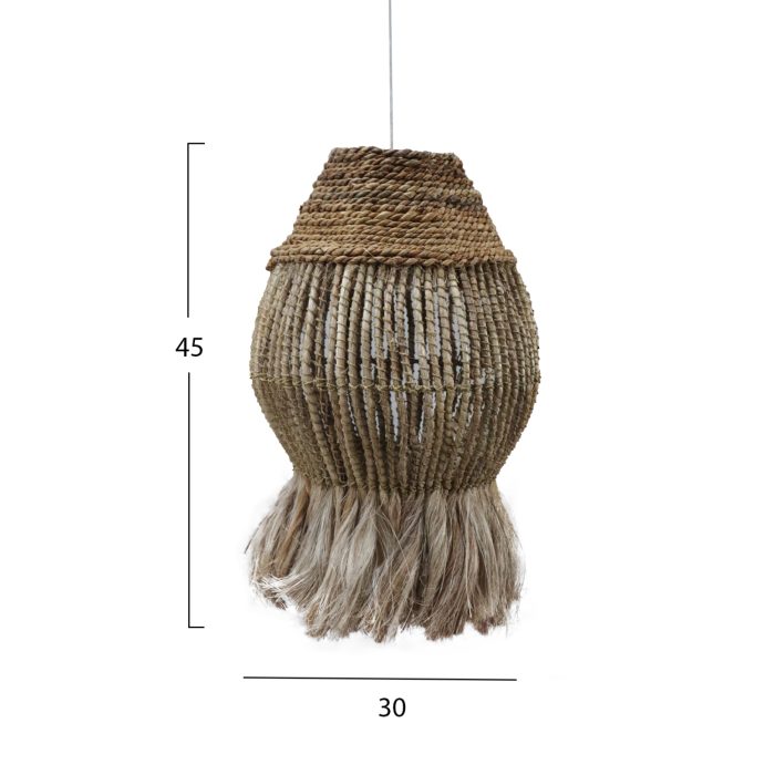 FB97772- Kρεμαστό φωτιστικό—- Αν επιθυμείτε να διακοσμήσετε το χώρο σας με ένα φωτιστικό σε boho στυλ, αυτό είναι μια χαρακτηριστική επιλογή. Είναι ένα μονόφωτο φωτιστικό με «καπέλο» σε κυλινδρικό σχήμα σαν «φαναράκι» φτιαγμένο από ίνες κάνναβης Μανίλας σε φυσικό χρώμα. Στο κάτω μέρος η κατασκευή καταλήγει σε κρόσια από τις ίδιες ίνες, δίνοντας μια άλλη αισθητική στο φωτιστικό.