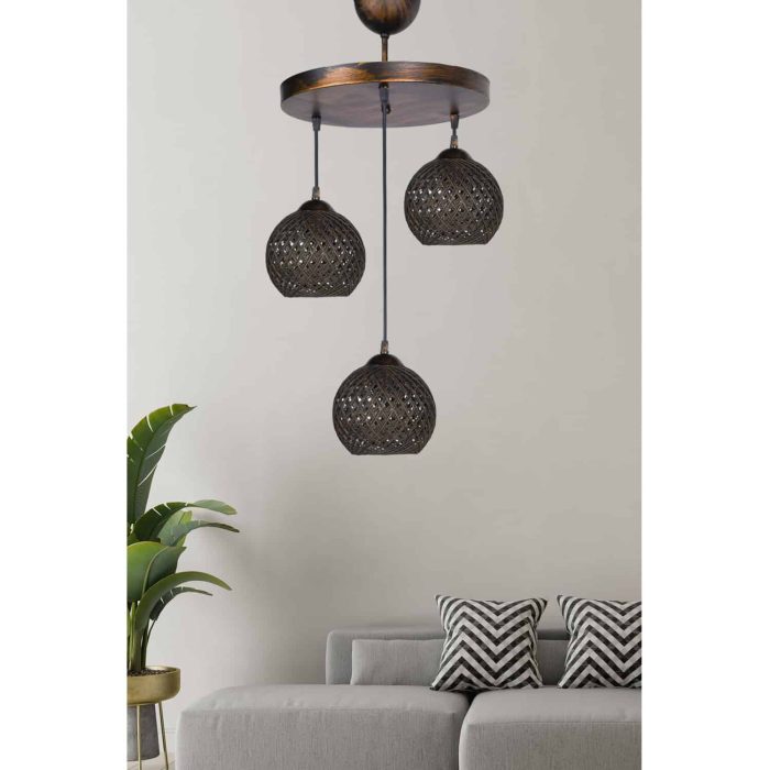 ΦΩΤΙΣΤΙΚΟ ΟΡΟΦΗΣ ΞΥΛΙΝΟ ΚΡΕΜΑΣΤΟ ΜΑΥΡΟ FB97349.03 Φ52×45Υ εκ.