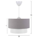 ΠΛΕΟΝΕΚΤΗΜΑΤΑ: Η αισθητική υπεροχή αυτού του φωτιστικού θα το κάνει να ξεχωρίζει στον χώρο σας γιατί έχει μια απλοϊκή αλλά καλλιτεχνική εμφάνιση. Ο πλαστικός του σκελετός είναι άψογα κατασκευασμένος ενώ το τύμπανο έχει δύο δακτυλίους. Ο εξωτερικός δακτύλιος είναι κατασκευασμένος από σκούρο γκρι ύφασμα, ενώ το εσωτερικό από ανοιχτό γκρι ύφασμα. Το αποτέλεσμα είναι εξαιρετικά κομψό σε εμφάνιση. Καταφέρνει να συνδυάσει μια ελκυστική μοντέρνα βιομηχανική γοητεία με το ιδανικό μέγεθος, προσθέτοντας έτσι μια όμορφη διακόσμηση στην οροφή σας. Το ρυθμιζόμενο ύψος του μπορεί να προσφέρει διαφορετικά επίπεδα φωτεινότητας και οπτικής απόλαυσης. Εκτός από διάφορα δωμάτια του σπιτιού σας, μπορεί, επίσης, να ταιριάξει και σε επαγγελματικούς χώρους όπως εστιατόρια, καφέ, ξενοδοχεία κτλ. Τα χρώματα του φωτιστικού και το design αιχμαλωτίζουν τα βλέμματα, αλλά ταυτόχρονα απαιτεί και ιδιαίτερη διακοσμητική συνοχή για να αναδειχθούν πλήρως οι αισθητικές αρετές του.