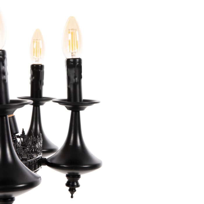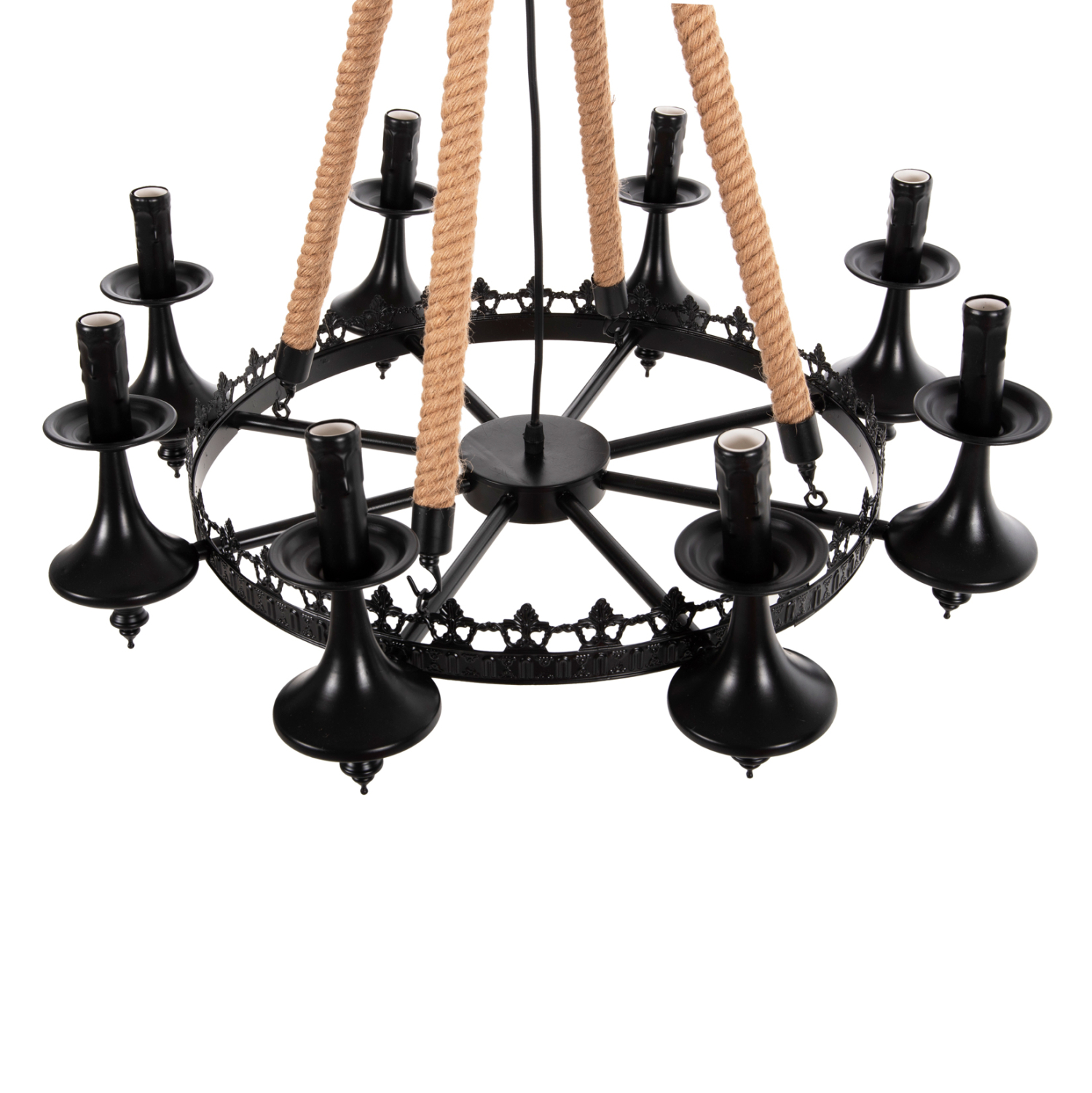 Το πολύφωτο FB94169 είναι μια ακόμα εντυπωσιακή προσθήκη στην γκάμα μας. Ο μαύρος μεταλλικός σκελετός του είναι κυκλικός και κρέμεται με αλυσίδα από την οροφή. Στον κυκλικό σκελετό είναι μονταρισμένα τα 8 φώτα σε μορφή κηροπηγίων, ενώ την εικόνα συμπληρώνουν τα σχοινιά που δίνουν την αίσθηση πολυελαίου στο φωτιστικό. Αυτό το πολύφωτο θα φωτίσει με άπλετο φως μεγάλους χώρους και θα εντυπωσιάσει με το όμορφο design του.