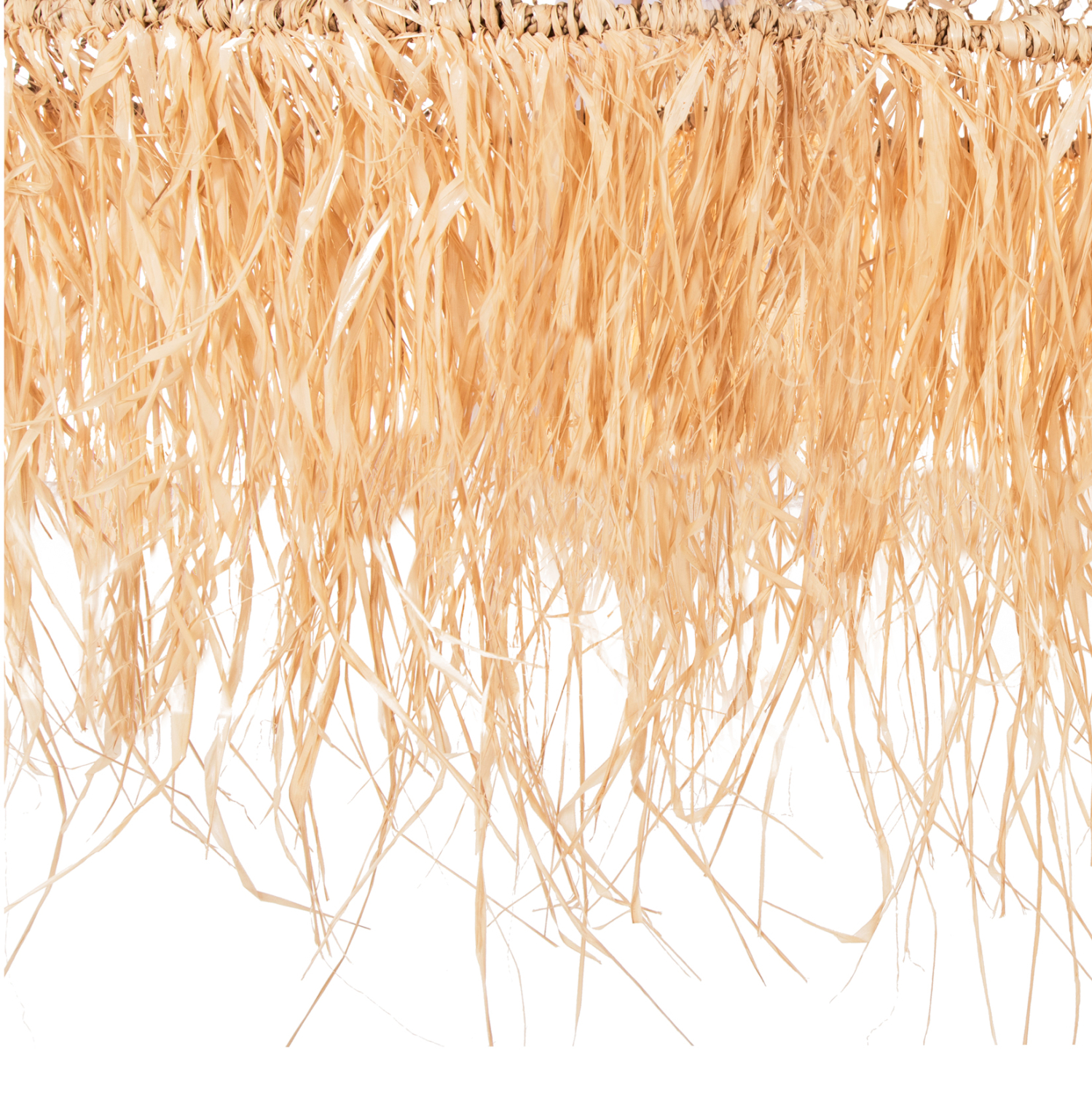 FB94031- Kρεμαστό φωτιστικό—- Αν επιθυμείτε να διακοσμήσετε το χώρο σας με ένα φωτιστικό σε boho στυλ με εξωτικά υλικά, αυτό είναι μια χαρακτηριστική επιλογή. Είναι ένα μονόφωτο με κυλινδρικό «καπέλο» φτιαγμένο από ίνες φύλλων φοίνικα και κρόσια από seagrass σε ΦΥΣΙΚΟ χρώμα.