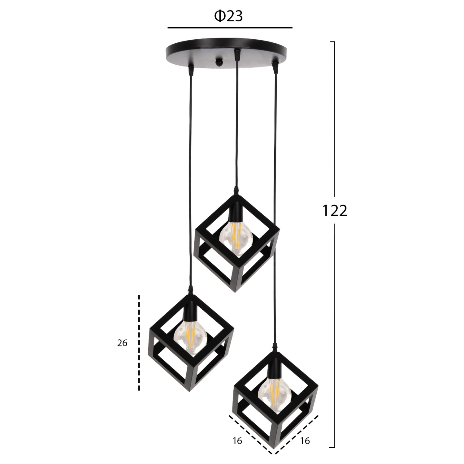 ΦΩΤΙΣΤΙΚΟ ΟΡΟΦΗΣ ΚΡΕΜΑΣΤΟ FB94036 3 ΚΥΒΟΙ ΜΑΥΡΟ ΜΕΤΑΛΛΟ Φ23x122Yεκ.