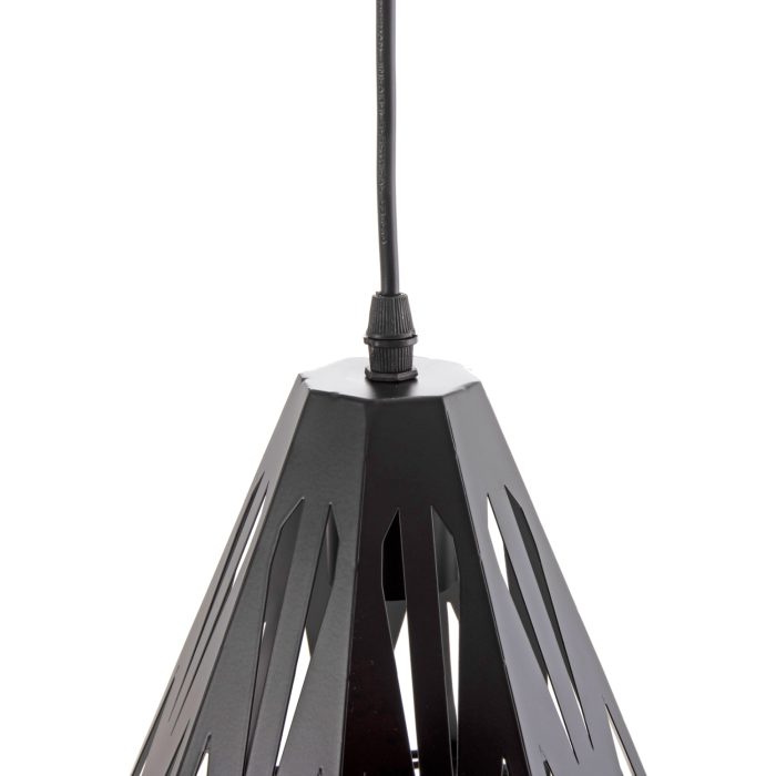 Ολόκληρο το φωτιστικό είναι από μέταλλο, όπως και η στρογγυλή βάση κρέμασης στην οροφή.