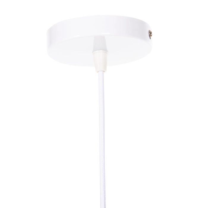 Ανακαλύψτε αυτό το νέο μας κρεμαστό φωτιστικό οροφής και ολοκληρώστε την διακόσμησή σας. Πρόκειται για ένα φωτιστικό με ΛΕΥΚΟ μεταλλικό καπέλο σε σχήμα κωνικής καμπάνας με λεπτομέρεια ξύλου στην κορυφή του φωτιστικού. Αισθητικά, ολοκληρώνεται με το επίσης ΛΕΥΚΟ καλώδιο κρέμασης και την λευκή βάση οροφής, και αποτελεί την τελευταία τάση στα φωτιστικά οροφής.
