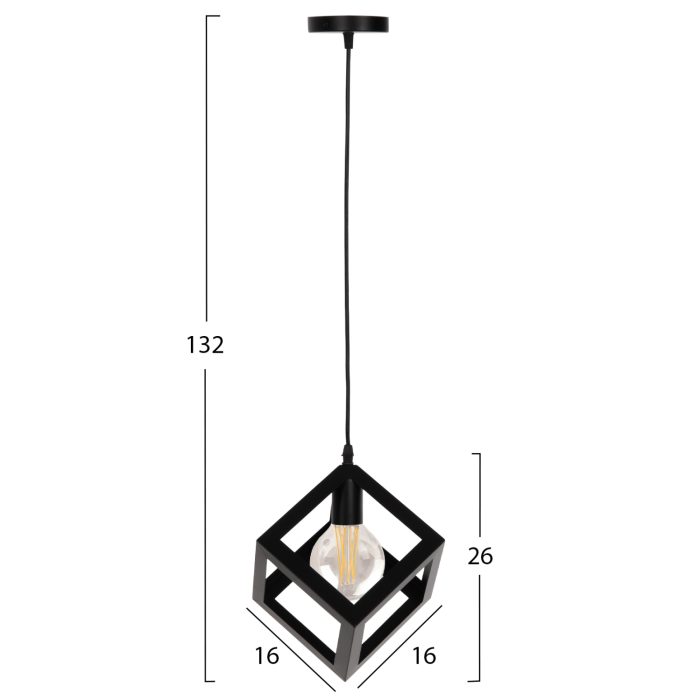 ΦΩΤΙΣΤΙΚΟ ΟΡΟΦΗΣ ΚΡΕΜΑΣΤΟ FB94192 ΜΑΥΡΟΣ ΜΕΤΑΛΛΙΚΟΣ ΚΥΒΟΣ 16x16x132Υεκ.