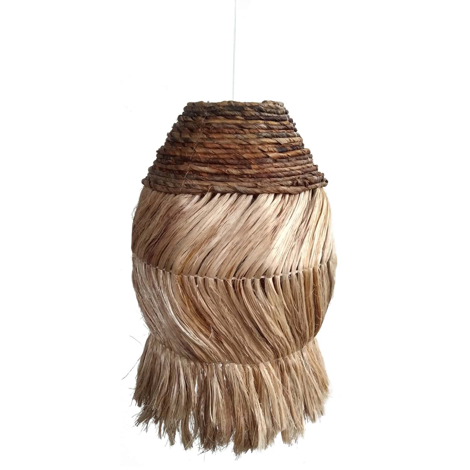 FB97763- Kρεμαστό φωτιστικό—- Αν επιθυμείτε να διακοσμήσετε το χώρο σας με ένα φωτιστικό σε boho στυλ, αυτό είναι μια χαρακτηριστική επιλογή. Είναι ένα μονόφωτο φωτιστικό με «καπέλο» σε μακρόστενο κυλινδρικό σχήμα φτιαγμένο από ίνες κάνναβης Μανίλας σε φυσικό χρώμα. Το ιδιαίτερο χαρακτηριστικό αυτού του φωτιστικού είναι ότι στο επάνω μέρος του καπέλου οι ίνες είναι πλεγμένες σαν σχοινί δίνοντας μια άλλη αισθητική στο φωτιστικό.